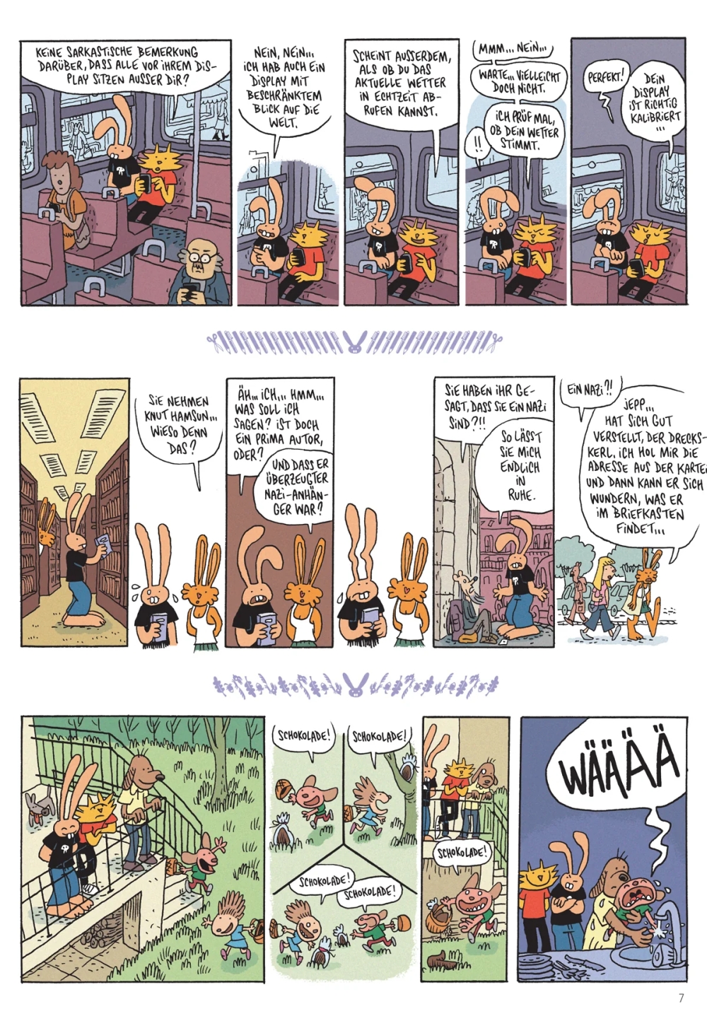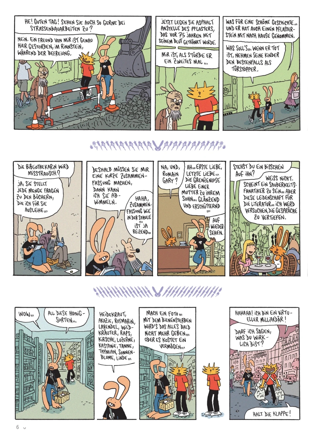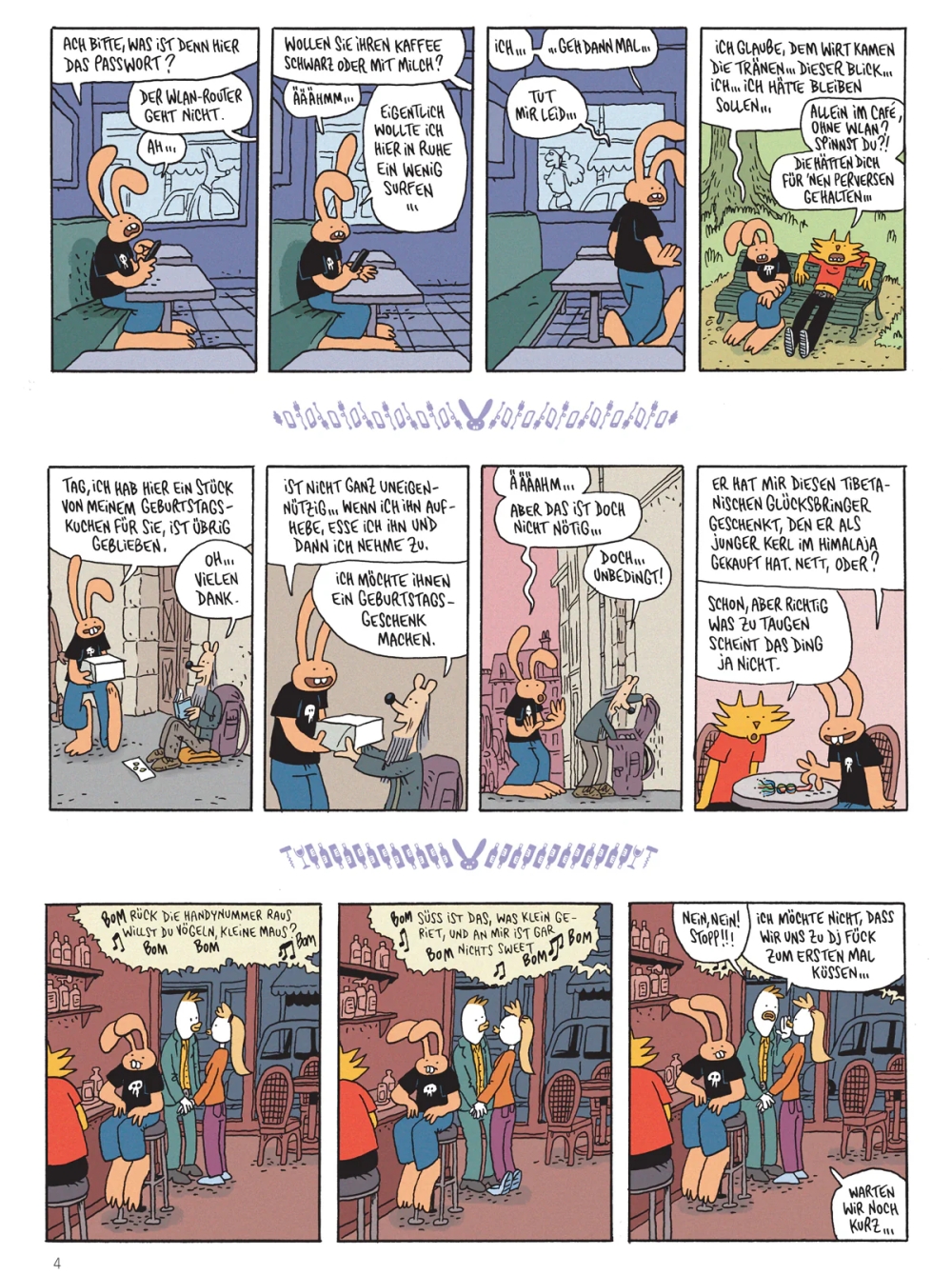 “Ein bisschen Liebe” ist eine Sammlung von 125 Strips – der erste gleich auf dem Cover des Albums platziert. Durch diese Strips zieht sich ein roter Faden: Die Freundschaft zwischen Herrn Hase und Marc Bolart, einem obdachlosen, literaturverrückten Mann, dessen Texte in der Edition Möhre veröffentlicht werden, einem von Herrn Hase und der Bibliothekarin Camille eigens zu diesem Zweck gegründeten Verlag…