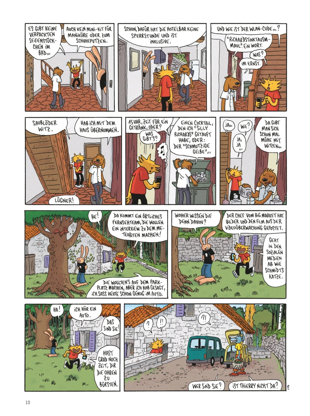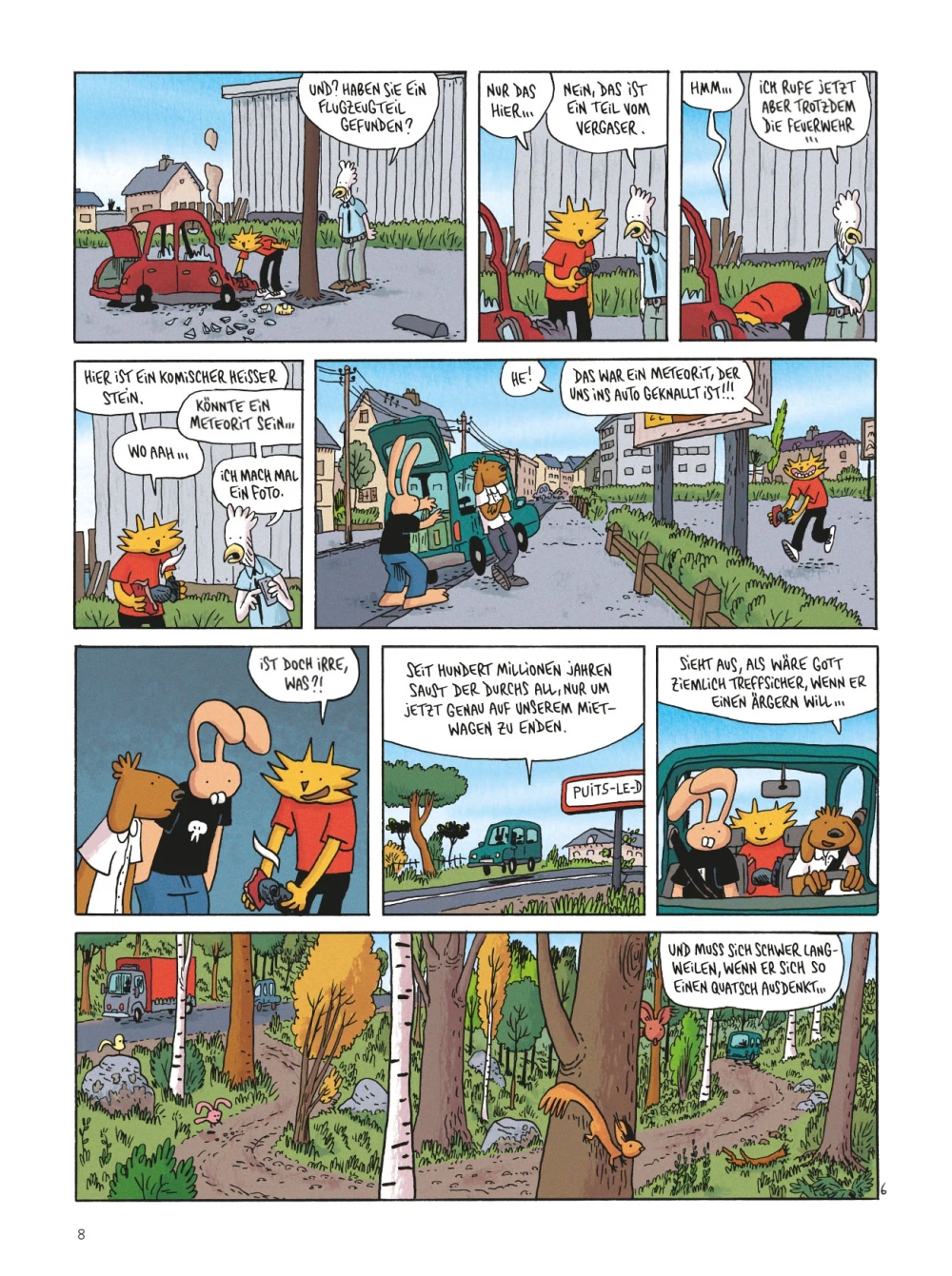 Herr Hase, seinen Arm im Gips, steckt in einem Zwiespalt: Soll er Anzeige gegen die Eltern erstatten, die ihn zu Unrecht für einen Pädophilen hielten und im Park verdroschen haben? Herr Hase ist hin- und hergerissen zwischen seinem Bedürfnis nach Gerechtigkeit und dem Mitgefühl für die Familien seiner Angreifer. Um Abstand zu gewinnen, will Herr Hase mit Richard verreisen, als das nächste Unglück geschieht: Ein Meteorit kracht auf die Motorhaube eines Autos, während sie auf einem Supermarktparkplatz eine Pause einlegen… und der Ärger beginnt erst richtig!