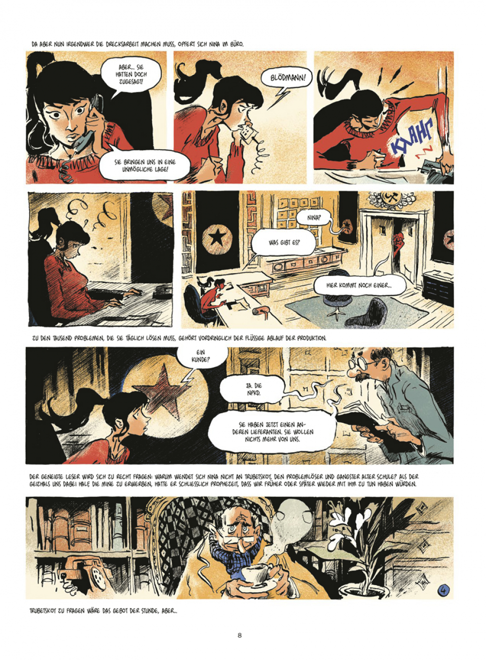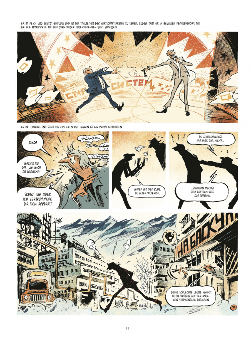 Das Bergwerk im Kaukasus ist jetzt eine Genossenschaft und gehört der Belegschaft, aber sich am Markt gegen mächtige Oligarchen wie Morkhoff durchzusetzen ist schwer. Ist da der neue deutsche Kunde Jürgen Pruck der Retter in der Not? Slava Segalow feiert indessen in Moskau mit seinen Bildern vom arbeitenden Menschen rauschende Erfolge – wie Nina es ihm prophezeit hatte. Dimitri Lawrin dagegen legt im nationalen TV einen spektakulären Absturz hin, verkriecht sich in seinem Palast und behält das letzte Wort: „Wir sind in Russland und hier gehen Geschichten nicht gut aus.”