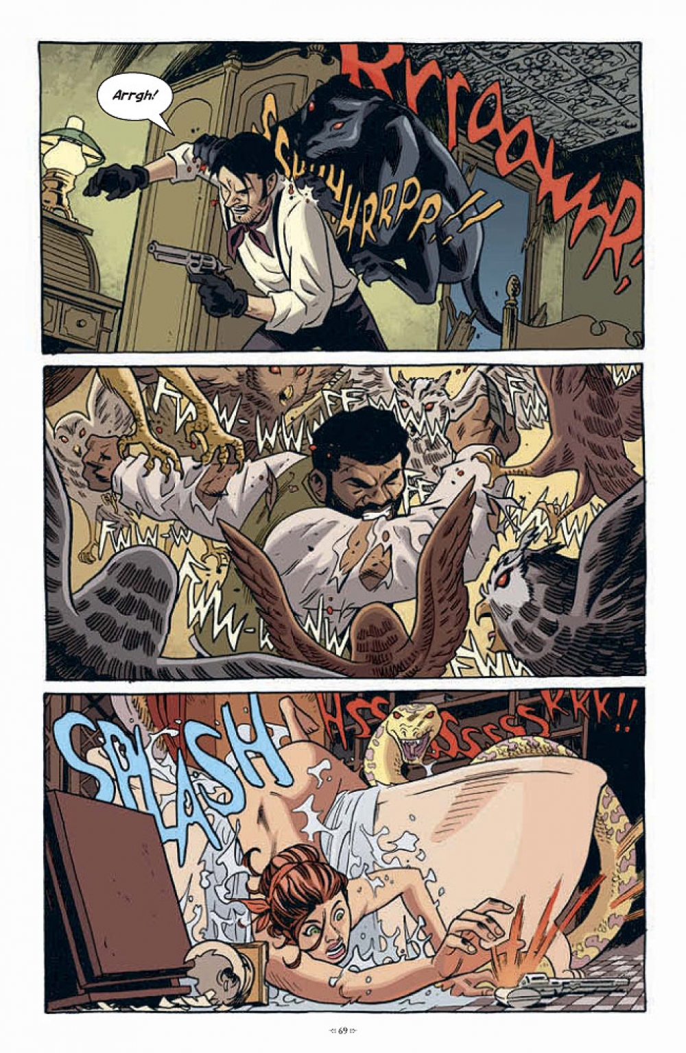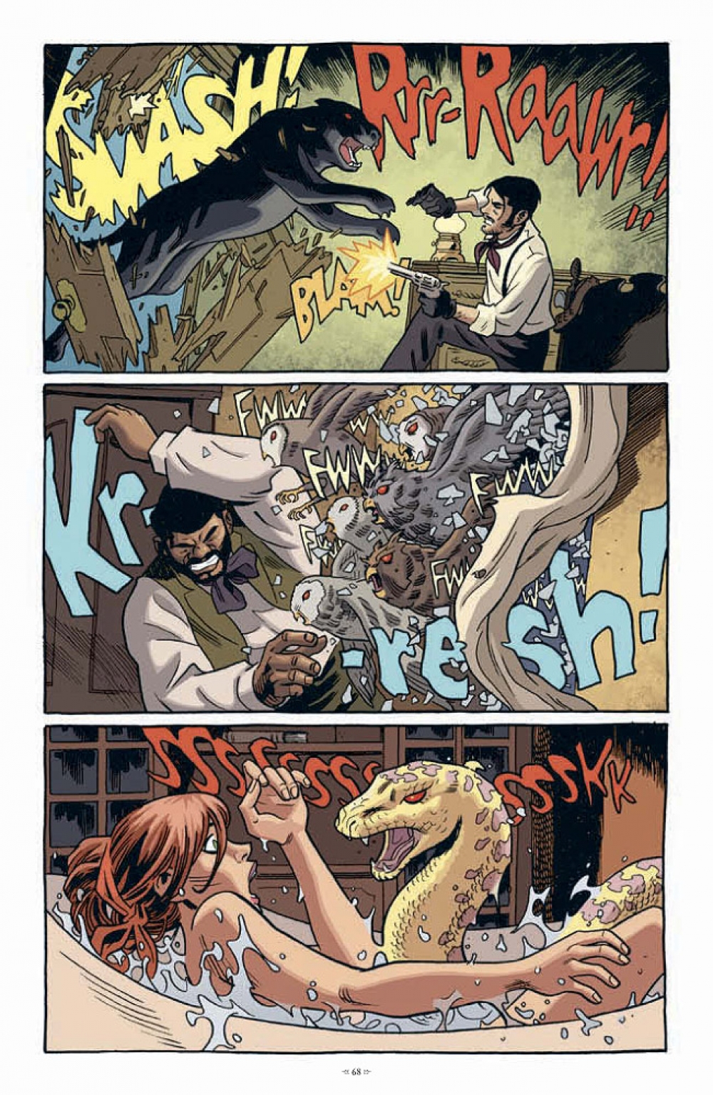 The Sixth Gun Buch 2 – Am Scheideweg beinhaltet die Heftausgaben 7 bis 11 der spannenden Serie des von den Kritikern gefeierten kreativen Teams: Autor Cullen Bunn, Zeichner Brian Hurtt und Kolorist Bill Crabtree.