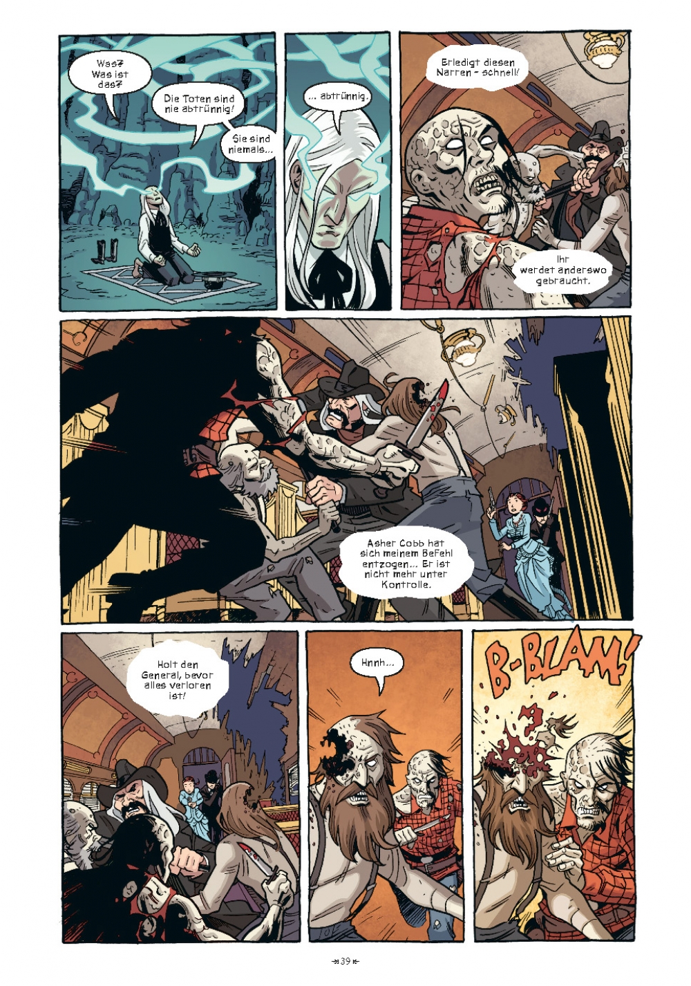 Unter dem Schutz des Schwerts von Abraham folgen Becky und Drake einer geheimen Bahnstrecke, um den Körper von General Hume an einem geweihten Ort zu verstecken. Doch die Witwe des Generals schlägt wieder zu und will die beiden von ihren Gefolgsleuten ausschalten lassen. Während der Zug, beschützt von gut bewaffneten Kriegermönchen, über die Gleise donnert, führt ein übler Geisterbeschwörer eine Bande untoter Gesetzloser in einen ebenso wagemutigen wie mörderischen Zugüberfall.