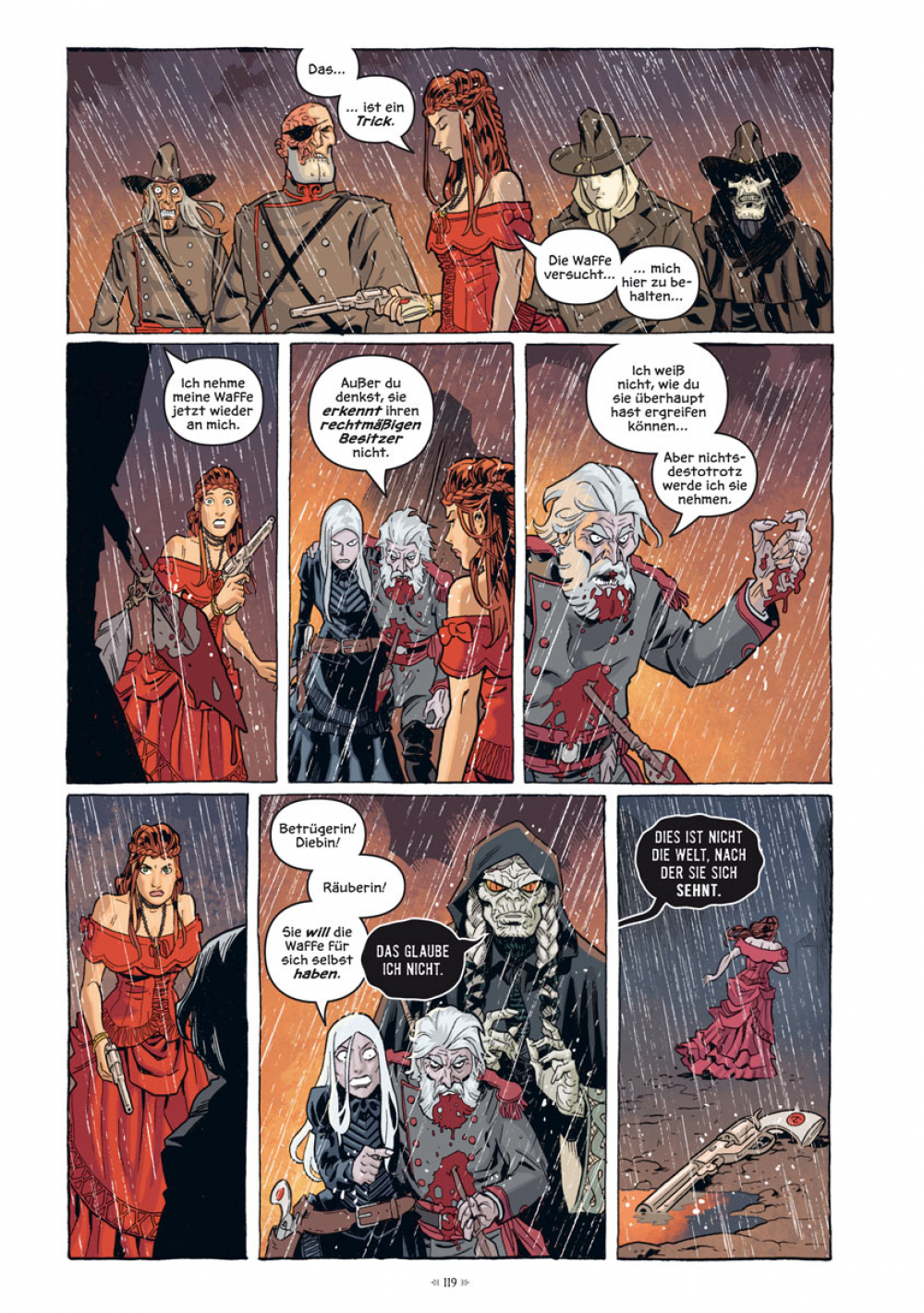 Auf sich allein gestellt und unbewaffnet, muss sie erkennen, was die furchterregende Macht der Sechs anzurichten imstande ist. Im Verlauf ihrer gefährlichen spirituellen Reise trifft Becky auf mordlüsterne Skinwalker, die grausamen Hungrigen Wesen und verdorbene Geister. Während sie vergessene Königreiche durchstreift, muss sich die mutige junge Frau der furchterregendsten Bande Gesetzloser erwehren, die jemals den Westen durchstreifte!