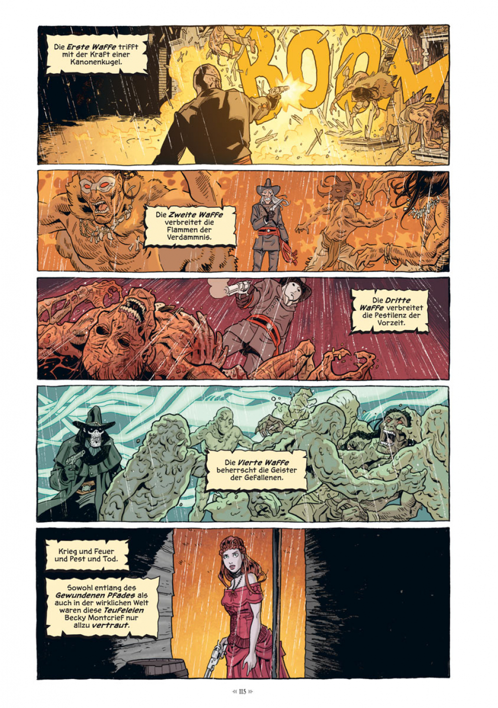 Auf sich allein gestellt und unbewaffnet, muss sie erkennen, was die furchterregende Macht der Sechs anzurichten imstande ist. Im Verlauf ihrer gefährlichen spirituellen Reise trifft Becky auf mordlüsterne Skinwalker, die grausamen Hungrigen Wesen und verdorbene Geister. Während sie vergessene Königreiche durchstreift, muss sich die mutige junge Frau der furchterregendsten Bande Gesetzloser erwehren, die jemals den Westen durchstreifte!