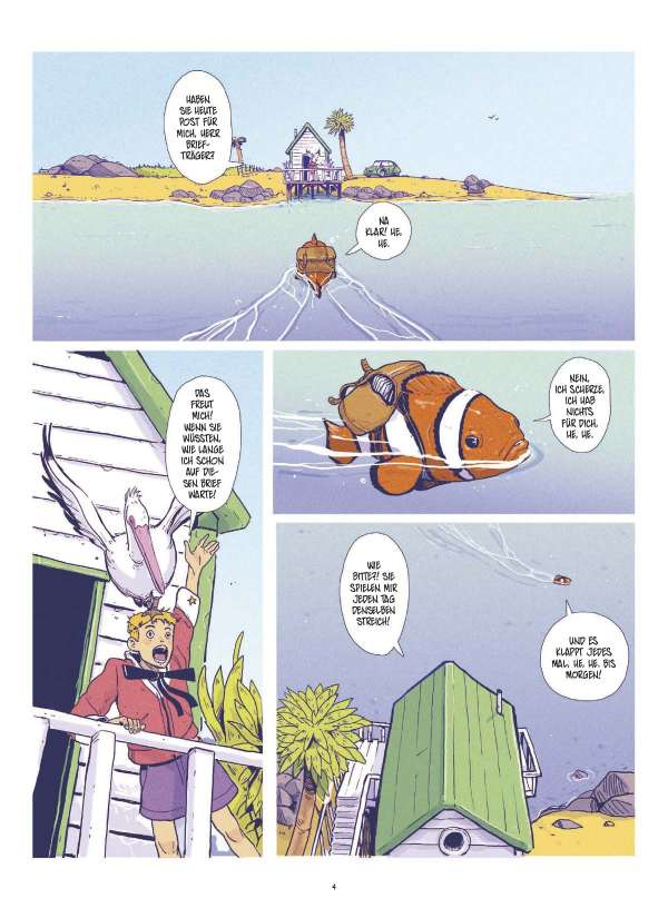 Wie jeden Morgen wartet Iode auf diesen einen besonderen Brief, der doch schon lange hätte kommen sollen! Ob das wohl ein Scherz des Briefe austragenden Clownfischs ist, der sich immer einen Spaß daraus macht, seine Post bei den Nachbarn zuzustellen? Oder ist der Brief vielleicht irgendwo falsch eingeworfen worden? Es gibt nur einen Weg, das herauszufinden: Iode muss in die Stadt fahren und selbst nachsehen.