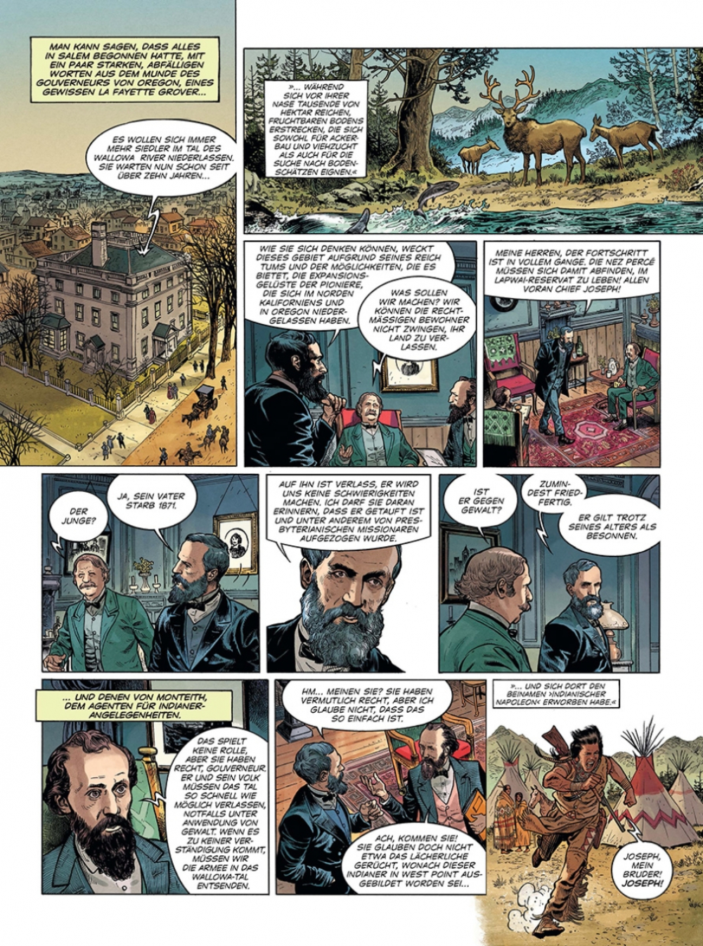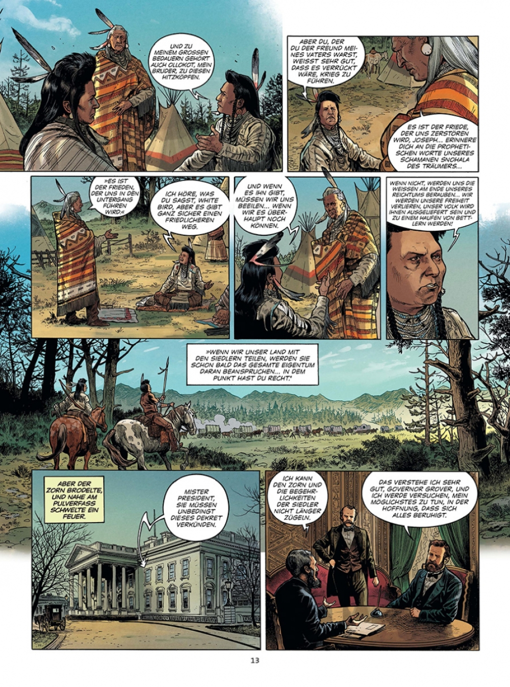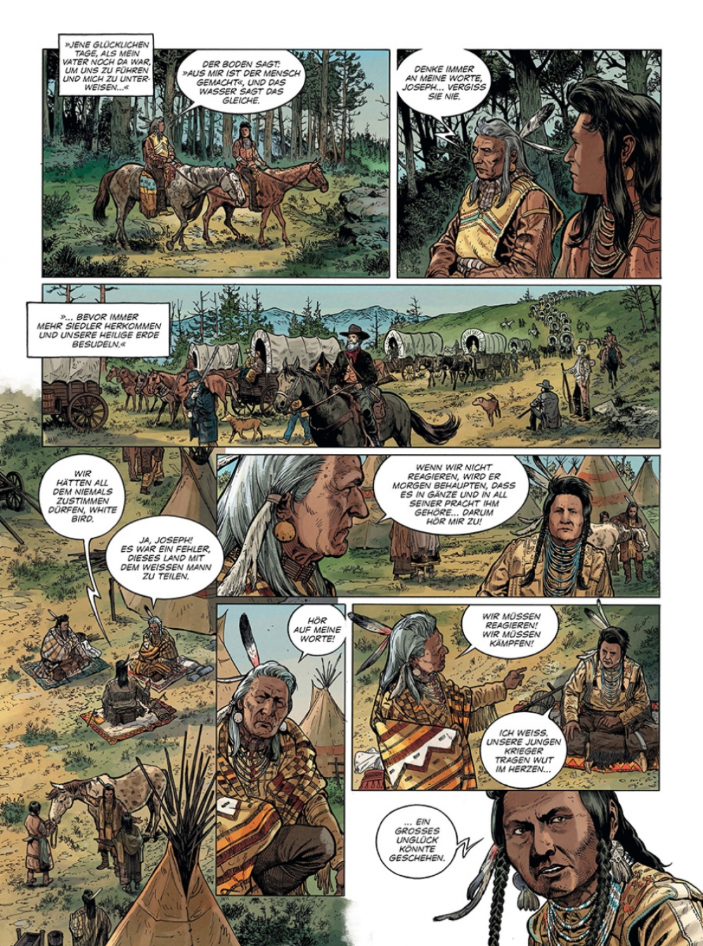 Gegen Ende des 19. Jahrhunderts wird das wunderschöne Wallowa-Tal, das angestammte Gebiet der Nez Percé, von Siedlern begehrt, die von Gold und satten Weidegründen angelockt werden. Nach langen aber letztlich fruchtlosen Verhandlungen müssen die Ureinwohner weichen und ihr Land westlich des Oregon verlassen, um einem bewaffneten Konflikt zu entgehen. Unter der Führung von Chief Joseph entschließen sie sich zu einem gefahrvollen Treck, bei dem fast 800 Seelen, darunter Frauen, Kinder und Alte, sowie Tausende von Pferden gen Kanada ziehen. Doch die amerikanische Armee ist ihnen auf den Fersen, und nach über 2000 Kilometern endet die mutige Odyssee der Nez Percé mit einer Niederlage gegen die Truppen von Colonel Miles. Die Kapitulation von Chief Joseph und die entbehrungsreiche Reise der Nez Percé bleiben ein ewiges Monument für den friedlichen Widerstand der Natives gegen die Gier der Kolonialisten.