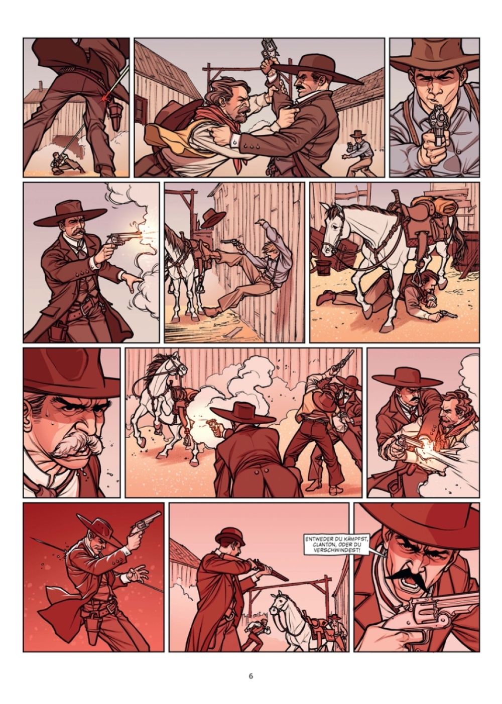Arizona, 1881. Die Eroberung des Wilden Westens ist in vollem Gange. Widersprüchlichste Einflüsse formen die junge Nation: das Streben nach Freiheit, der Wille zur Expansion, die Gier nach Reichtum und der Geist des Puritanismus – in den Weiten Nordamerikas scheint nichts unmöglich! In der Kleinstadt Tombstone kondensieren sie alle zu einer erbitterten Feindschaft zwischen den Gebrüdern Earp, deren Rechtschaffenheit mehr als fragwürdig ist, und der verbrecherischen Clanton-McLaury-Gang. Nach zahlreichen Provokationen findet der Streit am 26. Oktober seinen Höhepunkt in der berühmten Schießerei am O. K. Corral. Viele Fakten dieses wohl bekanntesten Feuergefechts des Wilden Westens werden für immer im Nebel der Geschichte verborgen bleiben, aber was wir wissen, wird in dieser Graphic Novel offengelegt.