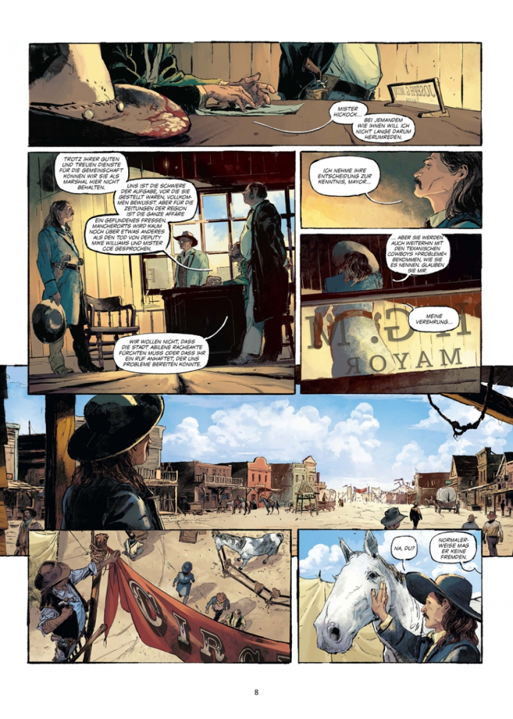 Sein Name war James Butler Hickok, doch sie nannten ihn Wild Bill. Der beste Schütze des Westens, Frauenheld, Spieler und Säufer ohnegleichen. In der Wildnis von Kansas vertrat er das Gesetz, bis er in einer schicksalhaften Nacht seinen Deputy erschoss und den Sheriffstern an den Nagel hing. Nach Jahren des ziellosen Wanderns, der Schauspielerei im Gefolge von Buffalo Bill und Texas Jack, ist Wild Bills Herz nicht mehr bei der Sache. Er hasst die ewigen Maskeraden, die Illusionen einer Welt, die er längst verloren hat. Auf der Suche nach Authentizität macht er sich auf nach Deadwood im Gebiet der Dakota in den Großen Ebenen. Er hat ein Date mit dem Schicksal.