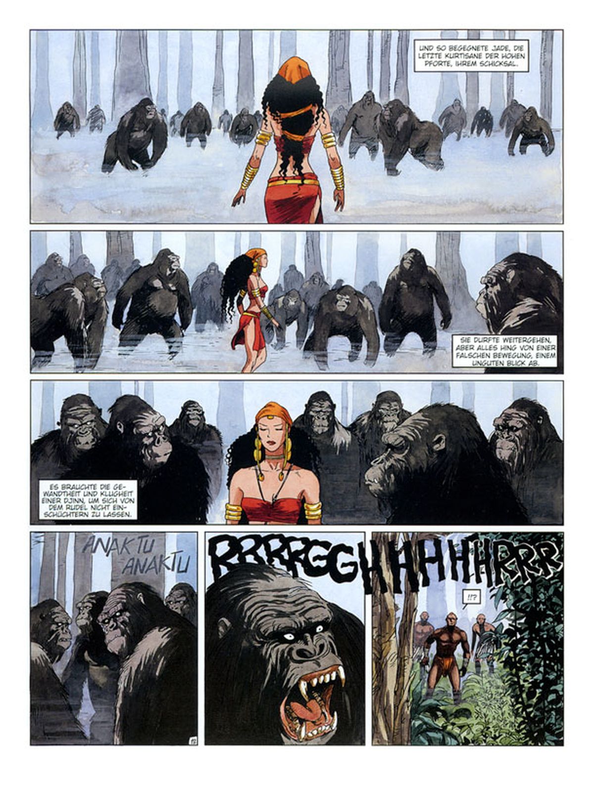 Die als Göttin verehrte Jade vereinigt sich mit dem Gorillakönig, Sinnbild des schwarzen Kontinents, und erlangt dafür Unsterblichkeit. Kim Nelson erreicht das Ziel ihrer Expedition mit Jagger – wenn auch anders als geplant...