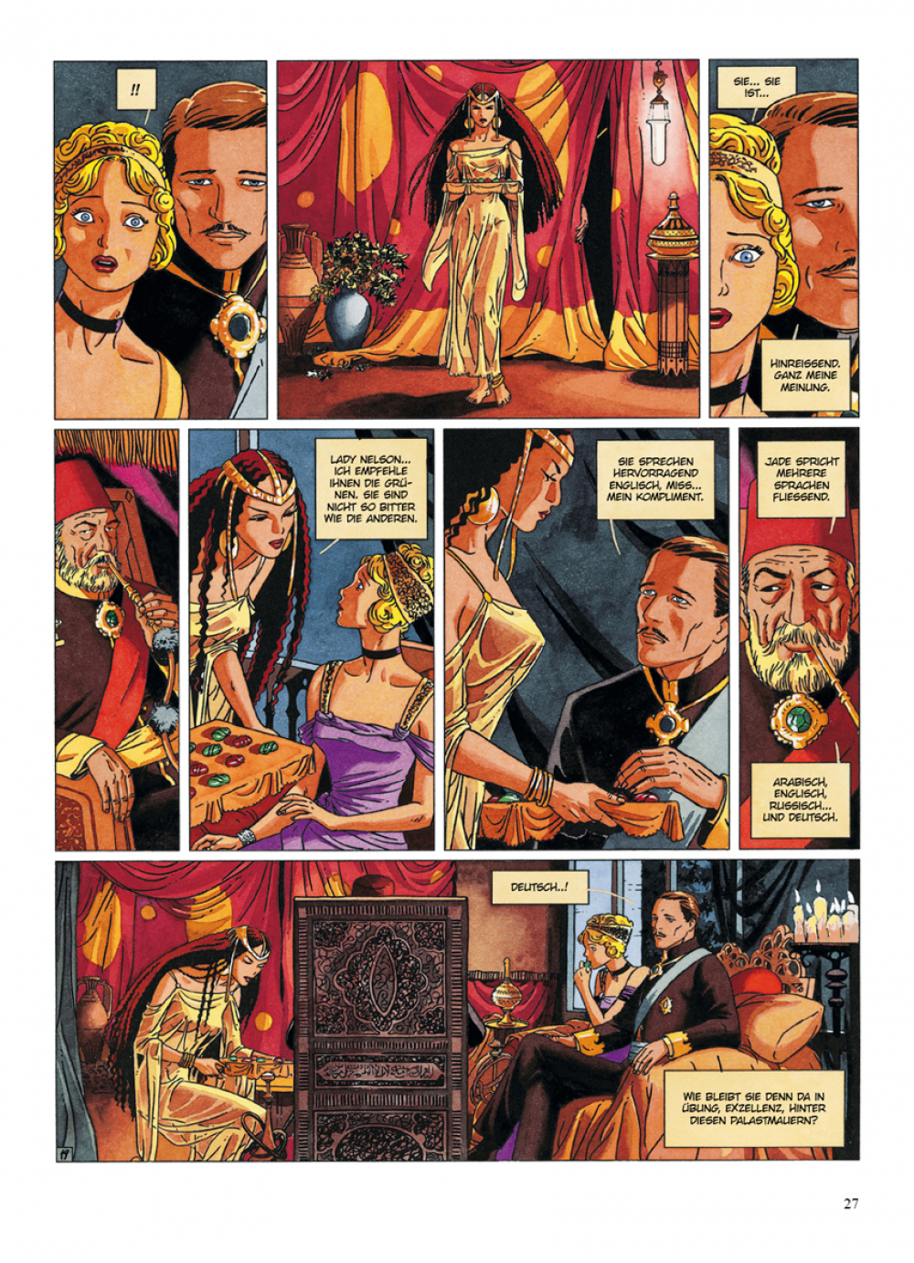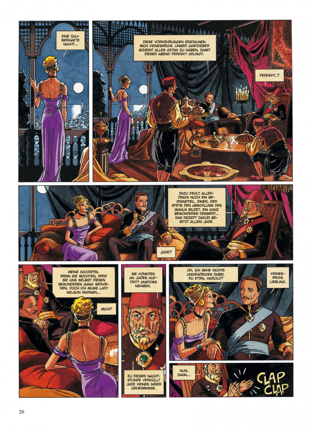 Auf den Spuren ihrer Großmutter Jade, der Favoritin des letzten osmanischen Sultans, kommt die junge Engländerin Kim Nelson nach Istanbul. Hier, an der Pforte zum Orient, vermischen sich Traum und Wirklichkeit und damit die Identitäten der beiden Frauen. Denn die eine wie die andere erliegt dem exotischen, erotischen Zauber Vorderasiens. Dieser Band enthält mit den ersten vier Geschichten den gesamten osmanischen Zyklus sowie Bonusmaterial.