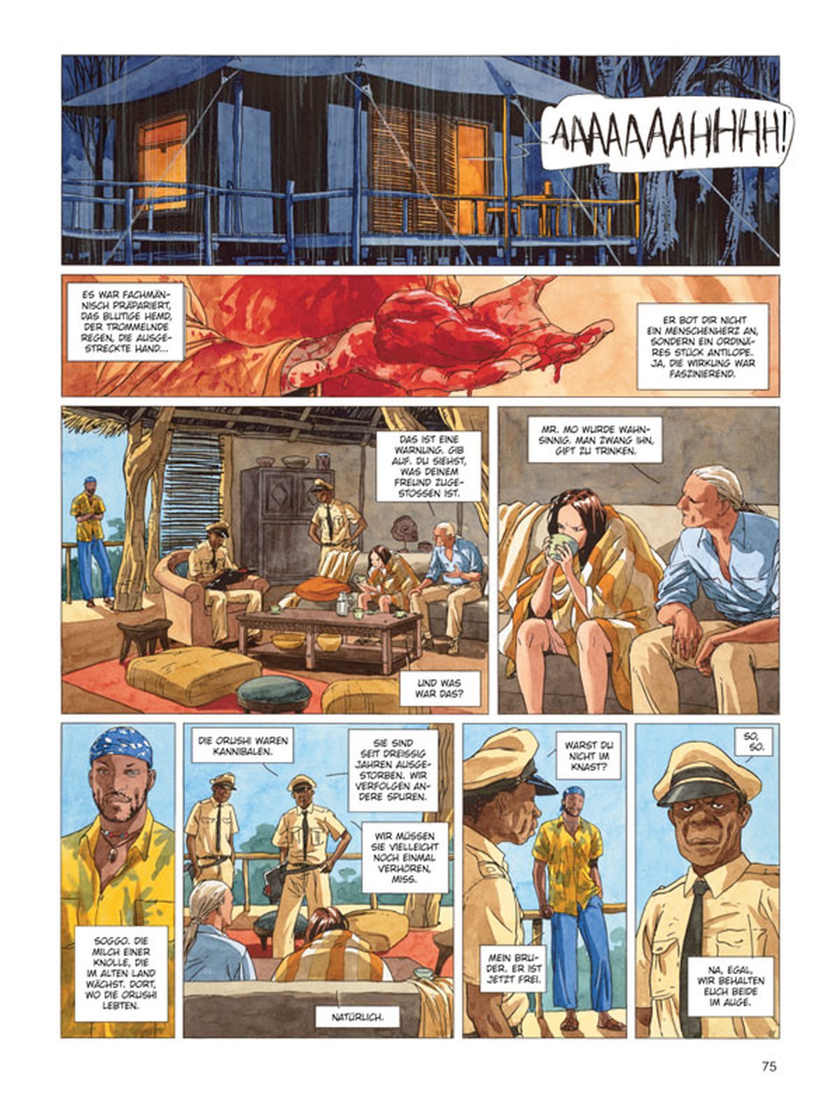 In der Fieberglut Afrikas verschmelzen Wirklichkeit und Vision, wie durch Zauberei werden Aussätzige geheilt und Gesunde sterbenskrank. Die junge Engländerin Kim Nelson folgt weiter den Spuren ihrer Vorfahrin Jade und entdeckt einen Kontinent der Körperlichkeit, voll Blutrausch und Fleischeslust. Dieser Band enthält mit fünf Kapiteln den kompletten Afrika-Zyklus.