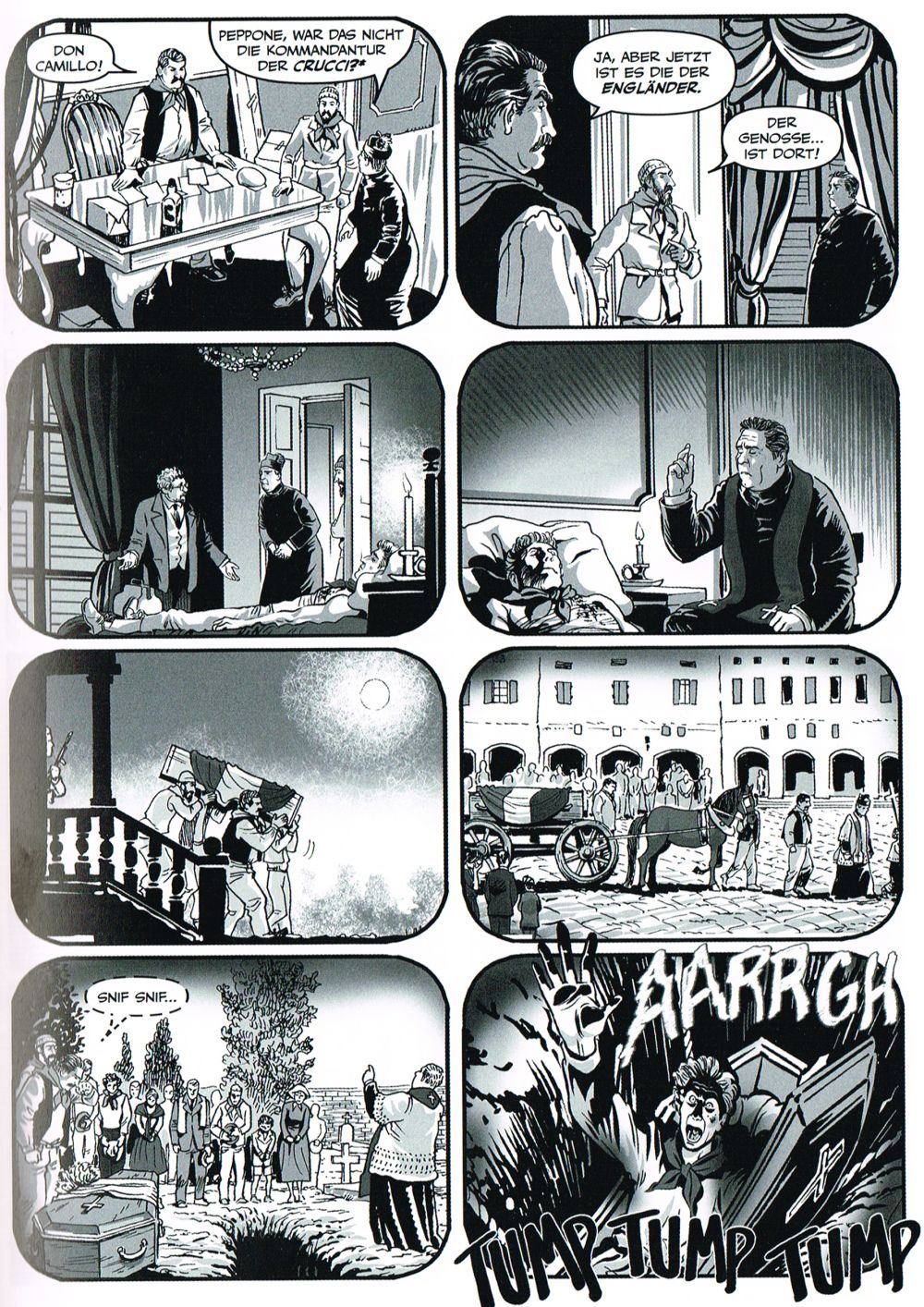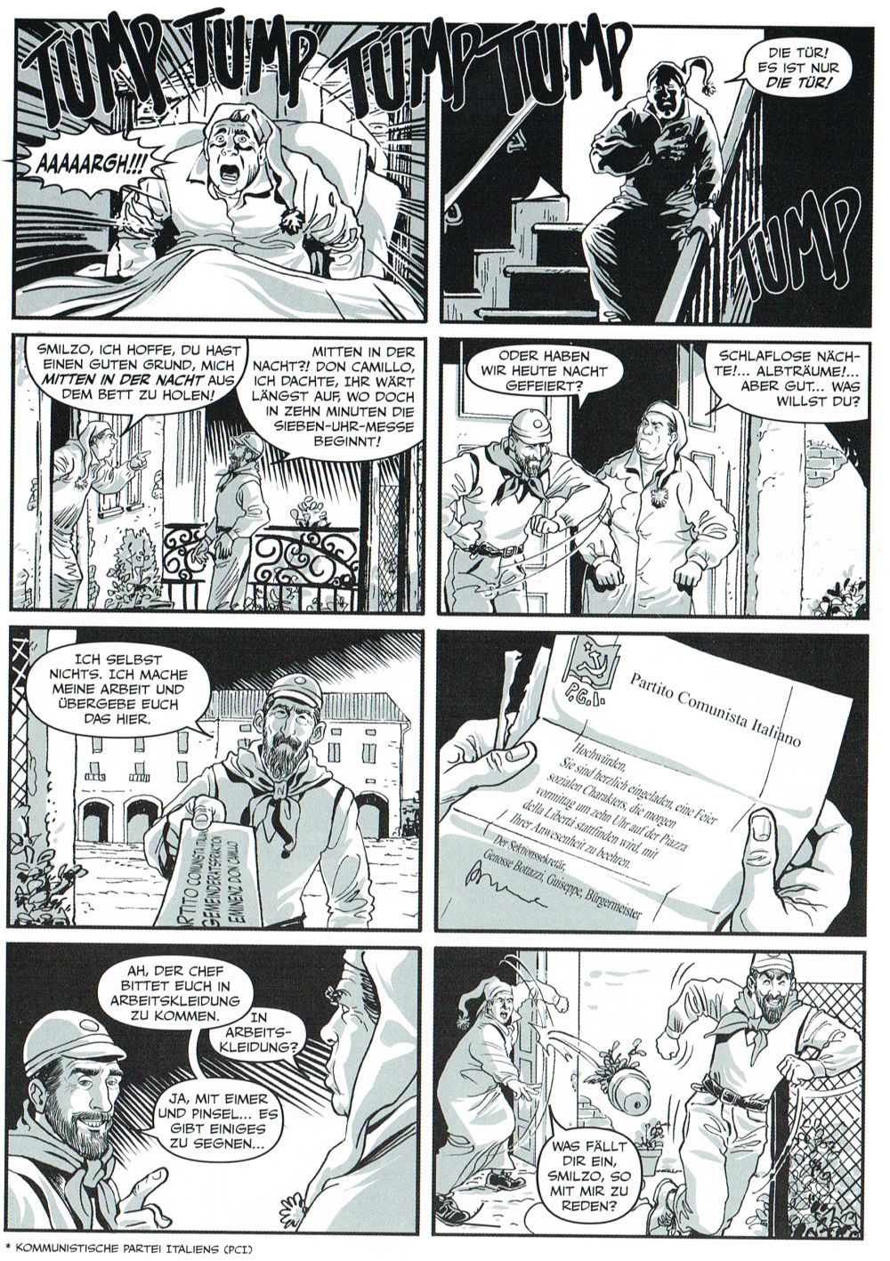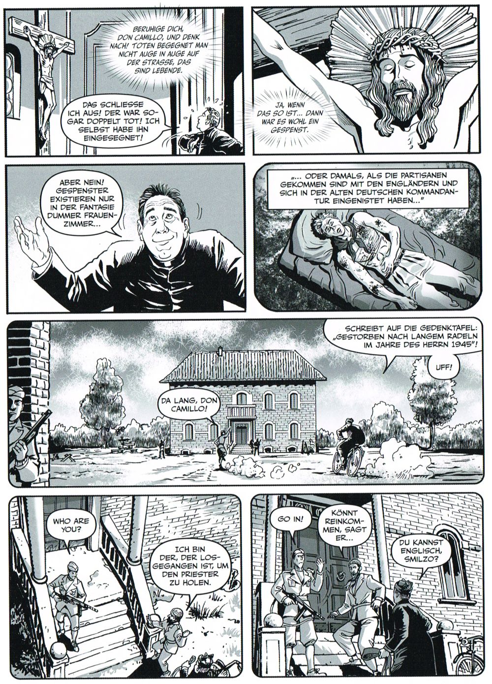 Diese Comic-Ausgabe der Erzählungen Guareschis präsentiert pro Band neun Episoden, die Don Camillo und Peppone gewidmet sind, und zwei, die auf „Mondo Piccolo“ basieren und in denen Personen auftreten, die man als Randfiguren ansehen würde, strahlten nicht auch sie diese überschäumende Lebendigkeit aus.