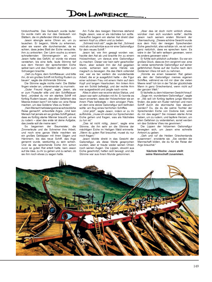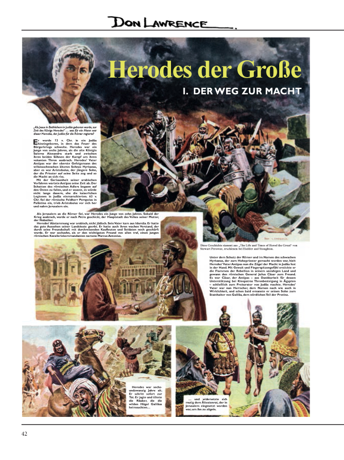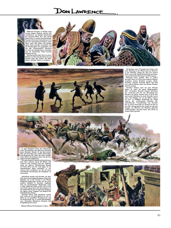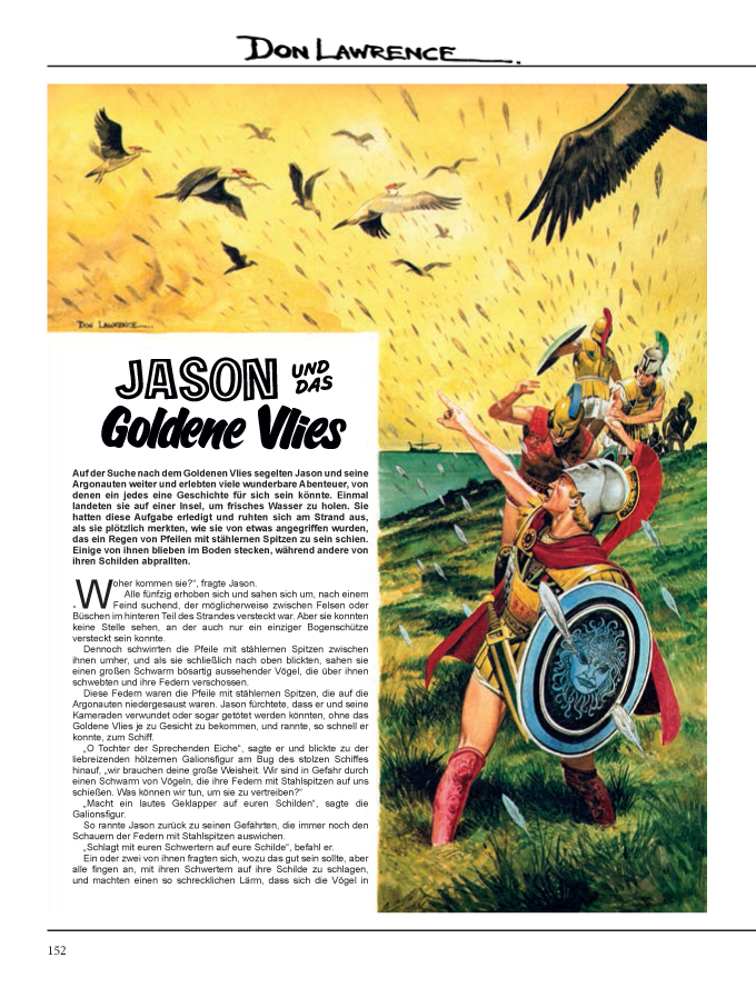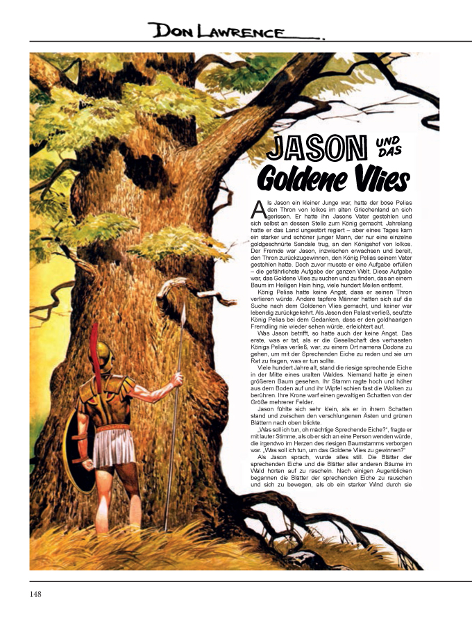 Die von Don Lawrence grafisch gestalteten Geschichten unterstreichen eindrucksvoll, dass er sich in allen Genres zuhause gefühlt hat und sorgen so für eine ebenso unterhaltsame wie abwechslungsreiche Lektüre. Als absolute Augenweiden entpuppen sich hier die 1964 von Michael Moorcock angefertigte Adaption von Stewart Perownes Klassiker Herodes der Große (1958), die ein Jahr später entstandene Westernserie The Range Rider von John Hunter oder seine phantastische Version von Pinocchio nach Carlo Collodi. Darüber hinaus widmet sich Lawrence noch der Argonautensage und begeistert Science-Fiction-Fans mit The Shining Ones von Arthur C. Clarke.
