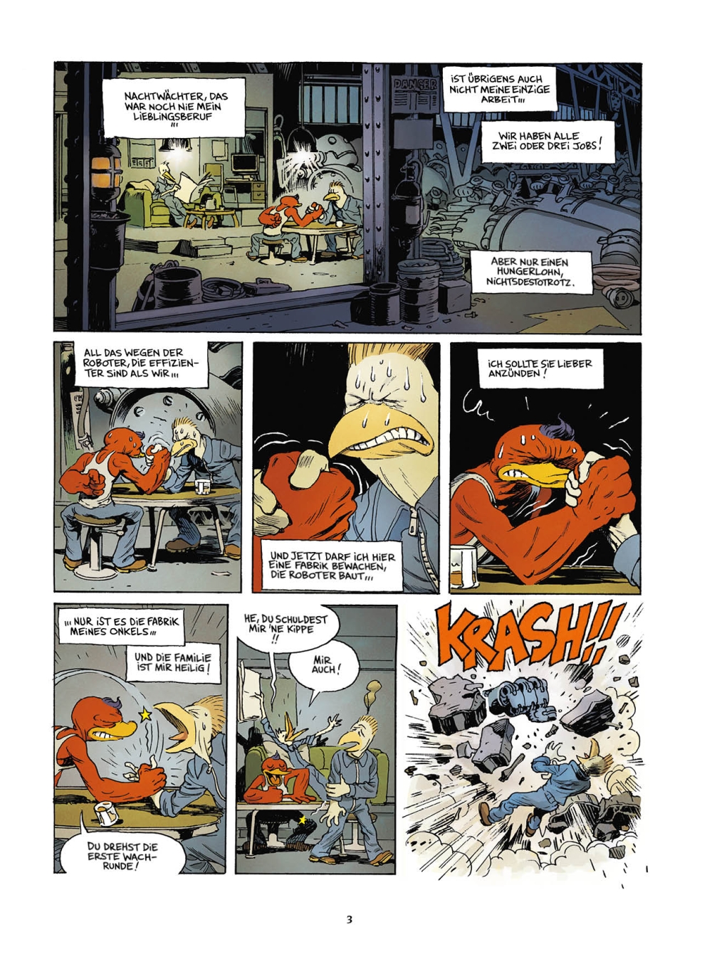Um der Invasion riesiger Dämonen aus dem Inneren von Terra Amata entgegenzuwirken, produziert Roberts Onkel in seiner Fabrik eine Armee von Riesenrobotern, jederzeit zum Angriff bereit. Robert arbeitet als Nachtwächter in dieser Fabrik – ein ruhiger Job, bis zu dem Tag, an dem er der Sabotage beschuldigt wird. Aber der junge Enterich ist entschlossen, seine Unschuld zu beweisen…