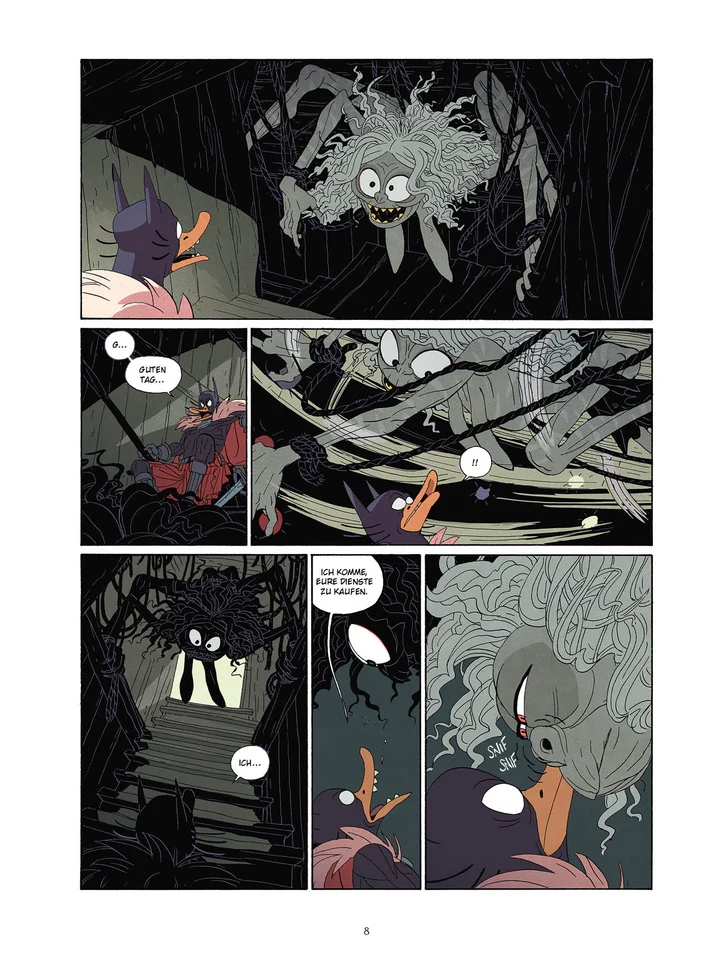 Joann Sfar und Lewis Trondheim präsentieren in “Donjon Monster” abgeschlossene Geschichten aus der Welt des “Donjon”. "Donjon Monster" 17 wurde gezeichnet von Bertand Gatignol, bekannt unter anderem von der Zusammenarbeit mit Szenarist Hubert an "Petit".