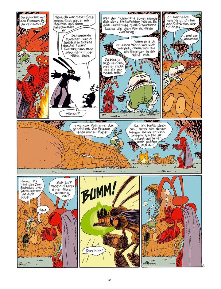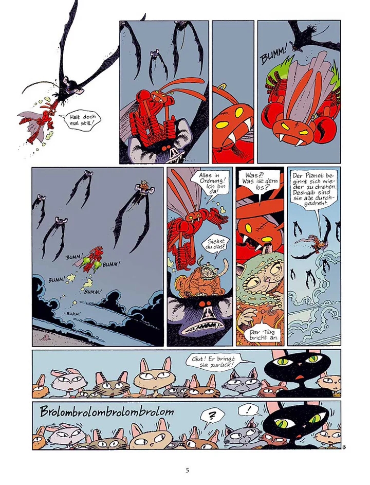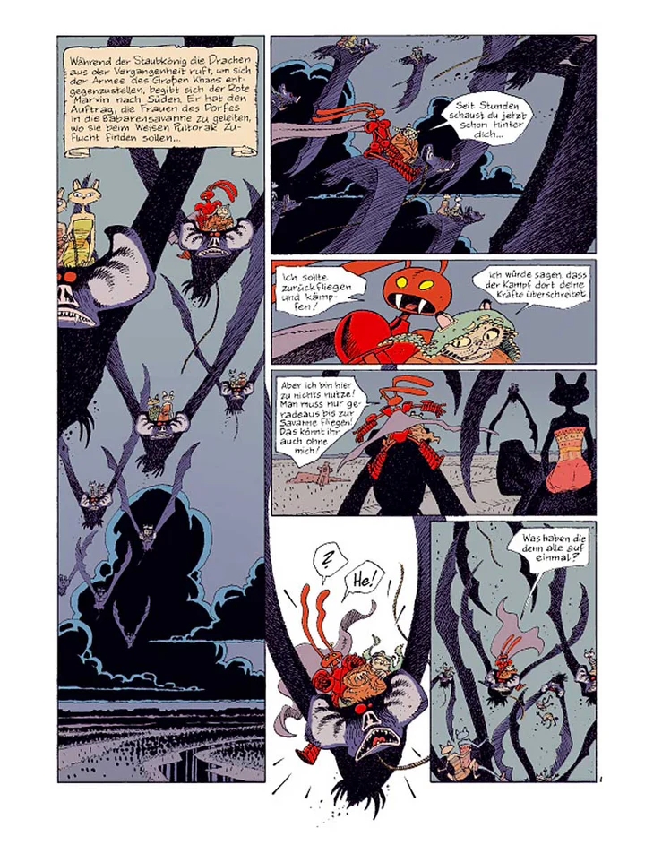 Die Handlung dieses Bandes enthält alles, was die Reihe von Joann Sfar (“Die Katze des Rabbiners”, avant-verlag) und Lewis Trondheim so beliebt und liebenswert macht: Fantasy mit viel skurrilem Humor. Die Zeichnungen von Andreas, der 1951 in Deutschland geboren wurde und heute in Frankreich lebt, fügen dem gewohnten Rezept noch eine kräftige Prise Action hinzu.