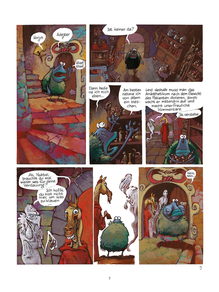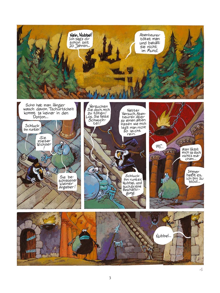 Yoann, hierzulande bekannt durch “Toto das Schnabeltier” (Carlsen Comics), schafft durch seine expressiven Zeichnungen eine ganz besondere Atmosphäre für die sympathischen Charaktere des “Donjon”-Universums, die den leichten Grundton der Geschichte hervorragend unterstützt.