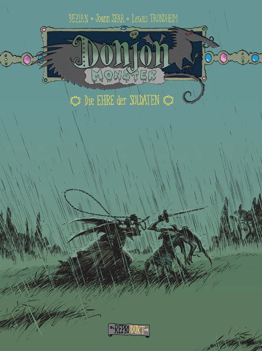 Joann Sfar und Lewis Trondheim präsentieren in “Donjon Monster” abgeschlossene Geschichten aus der Welt des Donjon. In jeder Folge von “Donjon Monster” wird ein komplettes Abenteuer eines Akteurs aus der Hauptserie von einem Gastzeichner präsentiert. “Die Ehre der Soldaten” ist in der Chronologie des “Donjon” auf dem Level 95 der “Abenddämmerung” angesiedelt.