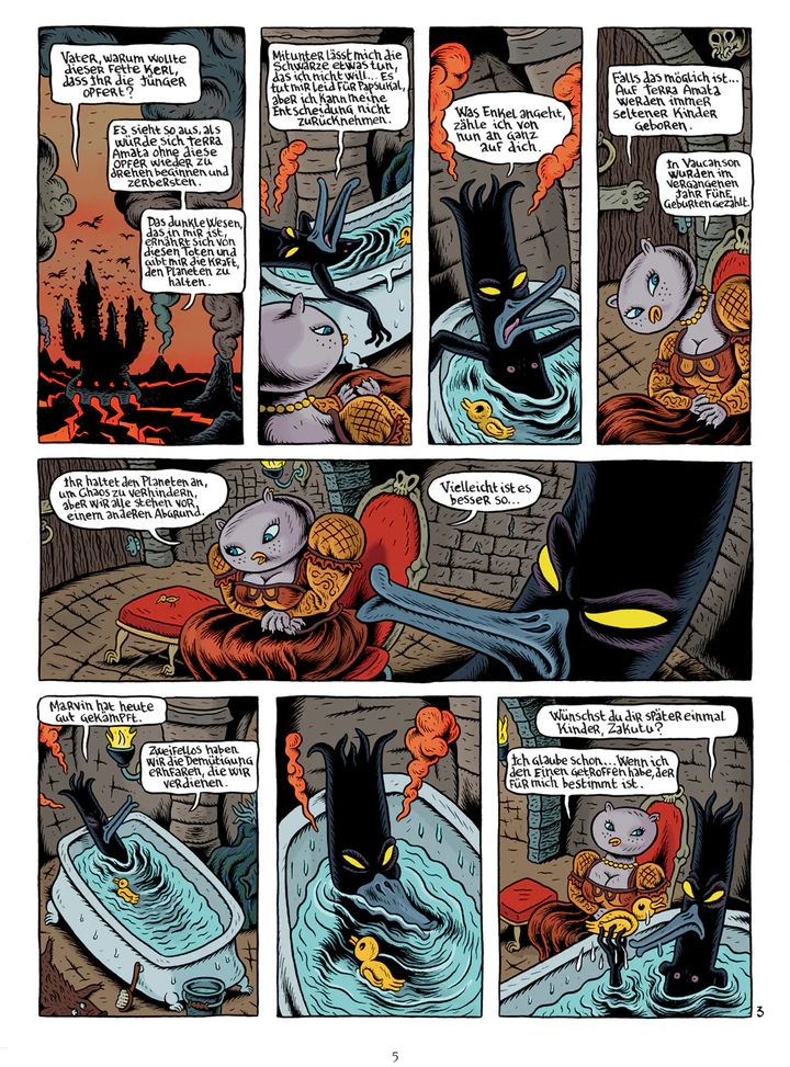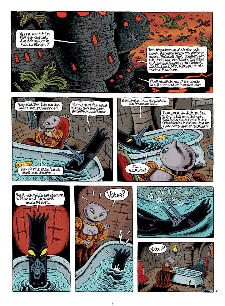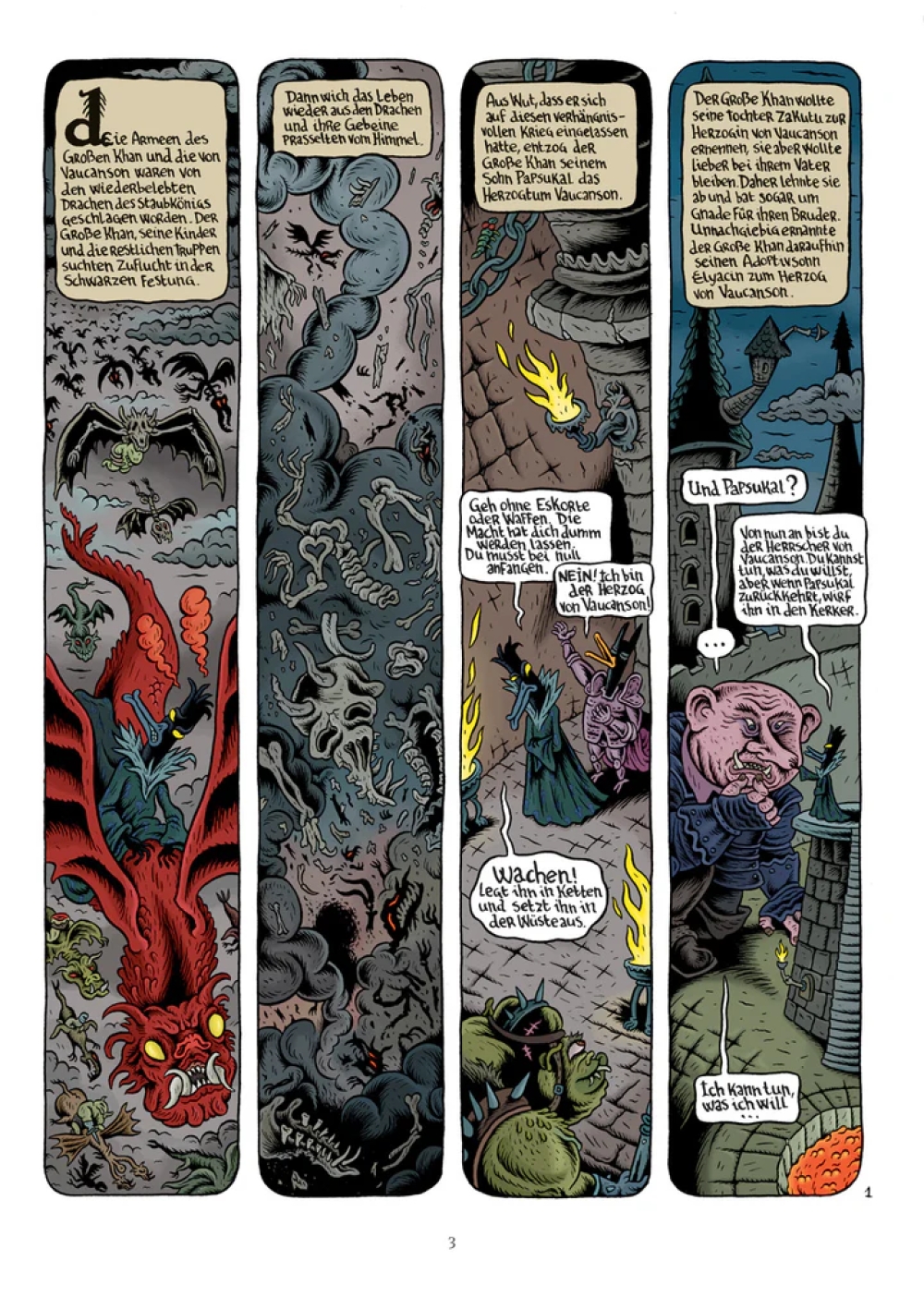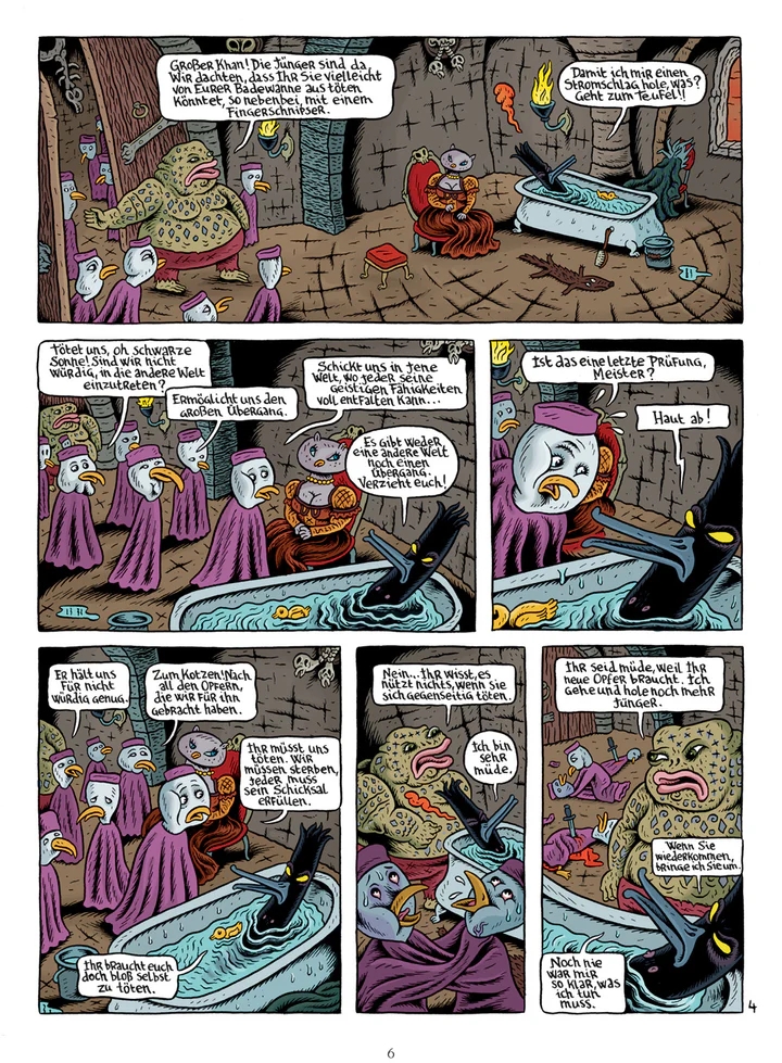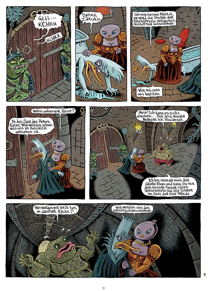 Joann Sfar und Lewis Trondheim präsentieren in “Donjon Monster” abgeschlossene Geschichten aus der Welt des “Donjon”. “Der schwarze Fürst” ist in der Chronologie des “Donjon” auf dem Level 103 angesiedelt und erzählt die Ereignisse, die sich in Band 103 der “Abenddämmerung” abspielen, aus der Sicht des Großen Khans. Gastzeichner Stéphane Blanquet entwirft abgründige und surreal anmutende Bilder, die die düstere Welt der “Abenddämmerung” hervorragend in Szene setzen.