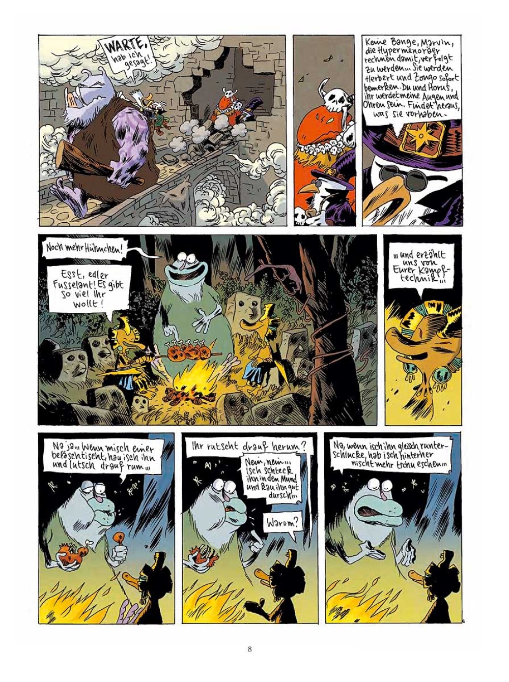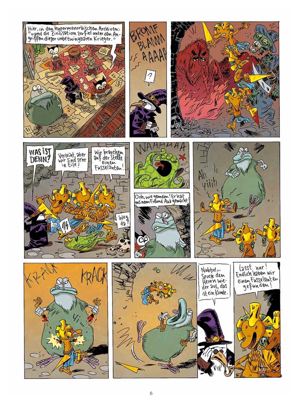 Im Donjon ist die Hölle los! Drei unbesiegbare hypermenoräische Krieger metzeln gnadenlos alles nieder, was ihnen in die Quere kommt. Nicht einmal Marvin kann ihnen Einhalt gebieten! Die streitlustigen Fremden sind auf der Suche nach einem Fusselant. Die aber sind äußerst selten – und mächtige Krieger, die den Hypermenoräern an Kampftechnik sogar noch überlegen sind. Als diese schließlich Nubbel, das freundlich grinsende Monster, das Kaninchen lutscht wie Bonbons, mit auf die Reise nehmen, enthüllt sich ein teuflischer Plan ...