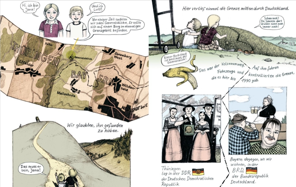 Mitten in einem Mittelgebirge in Deutschland haben die Geschwister Jana und Lutz einen idealen Spielplatz gefunden. Von hier können sie weit ins Land hinausschauen. Von ihren Eltern, Verwandten und Bekannten erfahren sie, dass ihr Lieblingsort auf dem Berg genau im innerdeutschen Grenzstreifen gelegen hat. Sie lernen, wie das war, als Deutschland getrennt war und lernen die Geschichte ihrer Familie kennen.