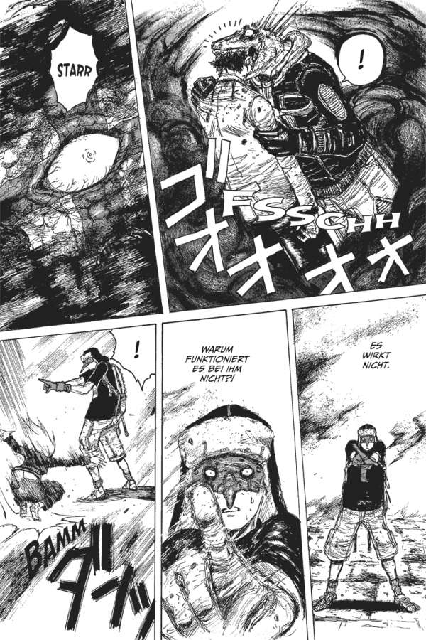 In einer Stadt, so düster, dass sie nur als „Loch“ bekannt ist, leben die Menschen in immerwährender Furcht vor den brutalen Magiern, die grausame Experimente an ihnen durchführen. Nichts und niemand scheint sie retten zu können. Doch nicht alle Menschen ergeben sich blind ihrem Schicksal: Um sich von seinem Fluch zu befreien, beginnt Caiman, gemeinsam mit der Barbesitzerin Nikaido Jagd auf den Magier zu machen, dem er sein monströses Aussehen zu verdanken hat …