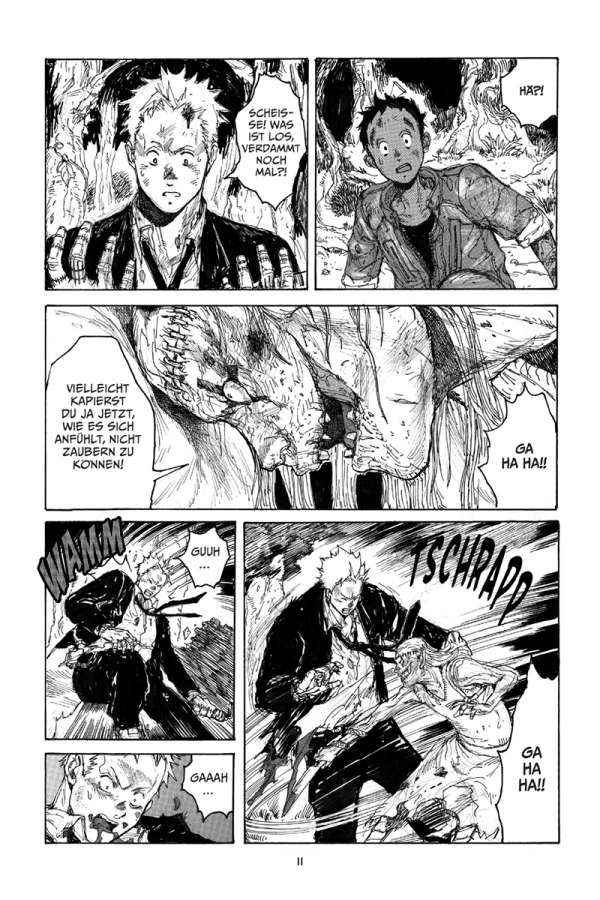 Caiman und Nikaido sind weiterhin auf der Suche nach Risu, einem gefährlichen Magier, der Caiman grausamen Experimenten unterzogen und ihm sein furchterregendes Aussehen gegeben hat. Der beinah tödliche Kampf zwischen ihnen hat jedoch einen tiefen Riss in Caimans und Nikados Freundschaft hinterlassen. Doch ihnen bleibt kaum Zeit, sie wieder aufzubauen, denn ihre Gegner sind ihnen bereits auf den Fersen! Enthält die Bände 8-9 der japanischen Originalausgabe.