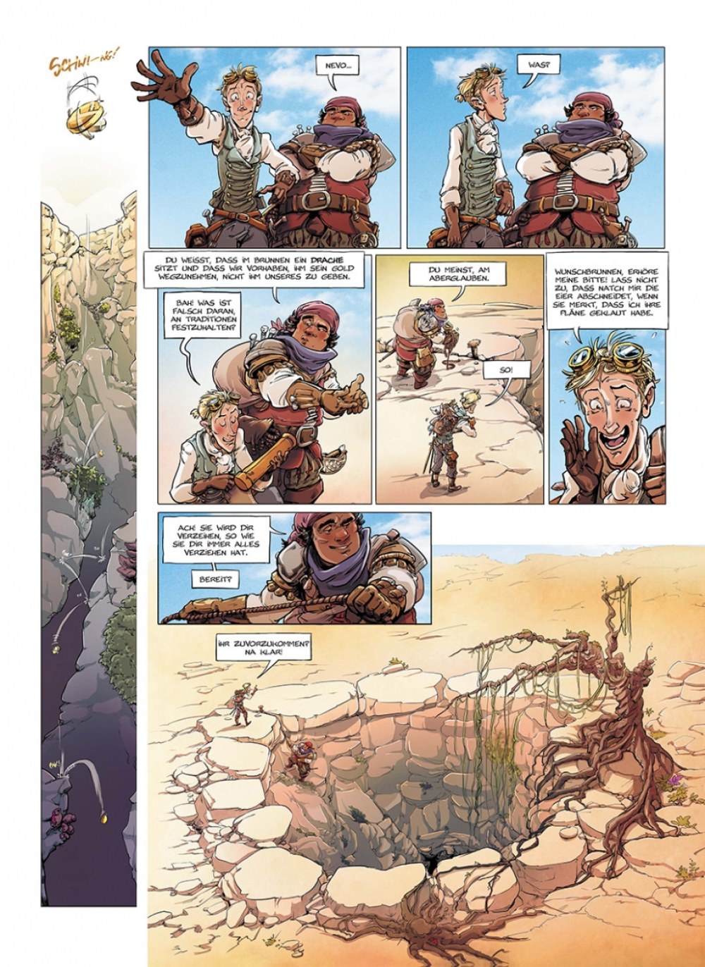 Greyson, Nevo und Natch sind die größten Glücksritter von Pamoison, der Stadt der Gifte. Außerdem sind sie dicke Freunde – und gnadenlose Konkurrenten. Aber nachdem es Nevo und Greyson gelingt, Natchs Expedition zum berühmt-berüchtigten Wunschbrunnen zu sabotieren und als Erste an dem sagenumwobenen Quell anzugelangen, hat sich das mit der Freundschaft. Doch obwohl sich das Duo auf alle Eventualitäten vorbereitet hat – immerhin soll im Brunnen ein echter Drache leben – geht ihre Expedition gehörig schief.
