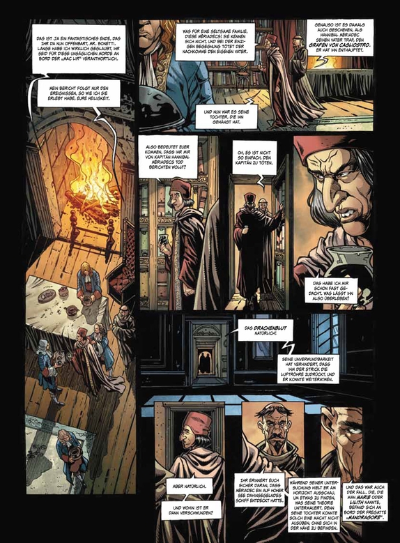 Niemand anderes als Hannibal Meriadecs Tochter Lilith steckt hinter den Untaten, die zu den schrecklichen Morden auf der Mac Lir geführt haben. Lilith ist eine Nekromantikerin, die über das Talent der Heimsuchung verfügt und mit ihren Fähigkeiten die Mannschaft von Hannibal zu den grausamen Geschehnissen gezwungen hat. Die Eskalation der Geschehnisse führt zur Meuterei. Meriadec sieht nur eine Möglichkeit dem Unheil ein Ende zu setzen, die erste Begegnung mit seiner Tochter Lilith, die mit ihrem Schiff der Mandragore und einer unheilvollen Besatzung im Dunst des Nebels der Mac Lir gefolgt ist. Lilith, die ihr Gesicht hinter einer Maske verbirgt, hat nur den einen Wunsch, sich an ihrem Vater zu rächen, seinen blank polierten Schädel an ihrer Seite zu haben und sich mit der unsterblichen – in Drachenblut getränkten - Haut ihres Vaters zu bedecken. Um nicht noch mehr Tote zu riskieren, schmiedet Hannibal mit seiner Tochter einen unheilvollen Pakt.