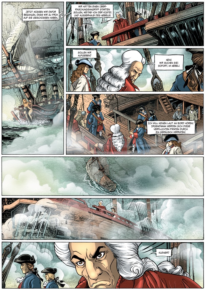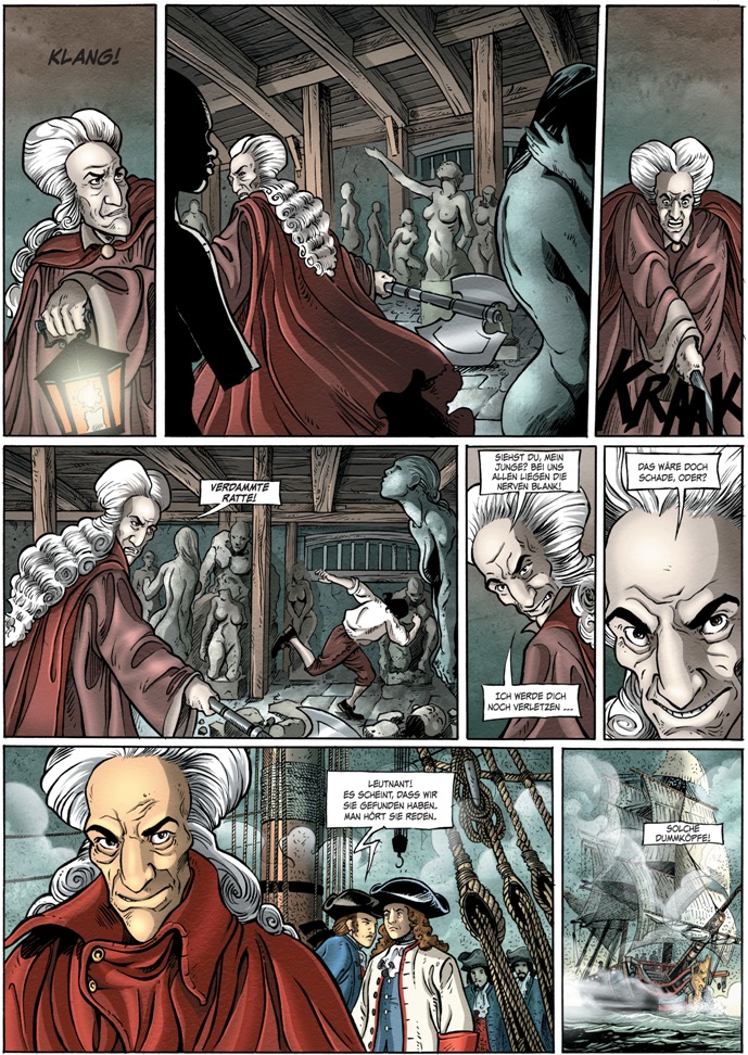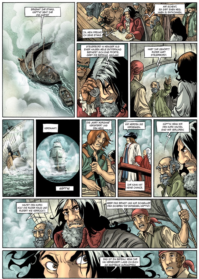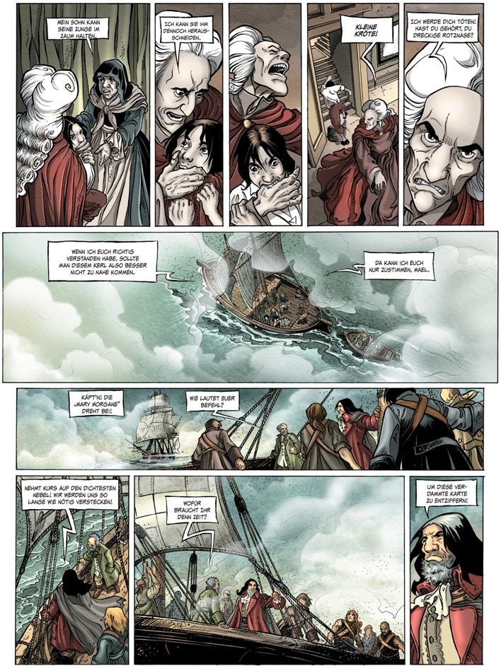 Auf ihrem Weg werden sie von dem mysteriösen Grafen Caligostro verfolgt. Caligostro hat nur ein Ziel - er will den Talisman zurück, der ihm unendliches Leben schenkt und den Mériadec ihm vor langer Zeit gestohlen hat. Kurz bevor die Piraten von ihren Verfolgern geentert werden, können sie sich mit Hilfe des Steins in die Welten von Sidh retten.