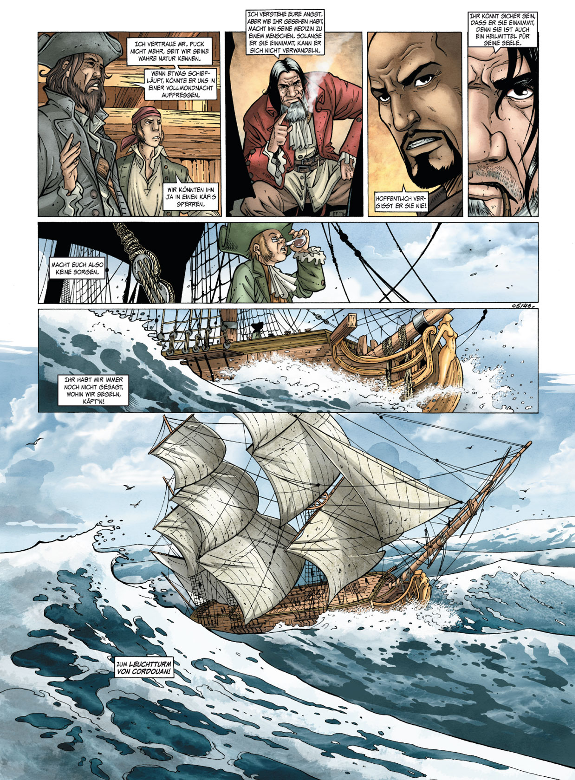 Graf Cagliostro drängt Lady Selenn, ihm bei der Suche nach den Piraten zu helfen. Hannibal und seine Gefährten haben sich auf den Weg zu, Leuchtturm von Cordouan gemacht, der einzigen Pforte zur Anderen Welt, in der sie das Drachenblut finden können. Noch während der Reise offenbart Lady Elween, die junge Elfe, die mit ihnen reist, dem Kapitän, dass sie ihn töten wird. Zwischen ihnen bahnt sich eine zwiespältige Beziehung an, als sie einander verfallen. Aber dann wird die Mac Lir von einem höchst gefährlichen Feind angegriffen...