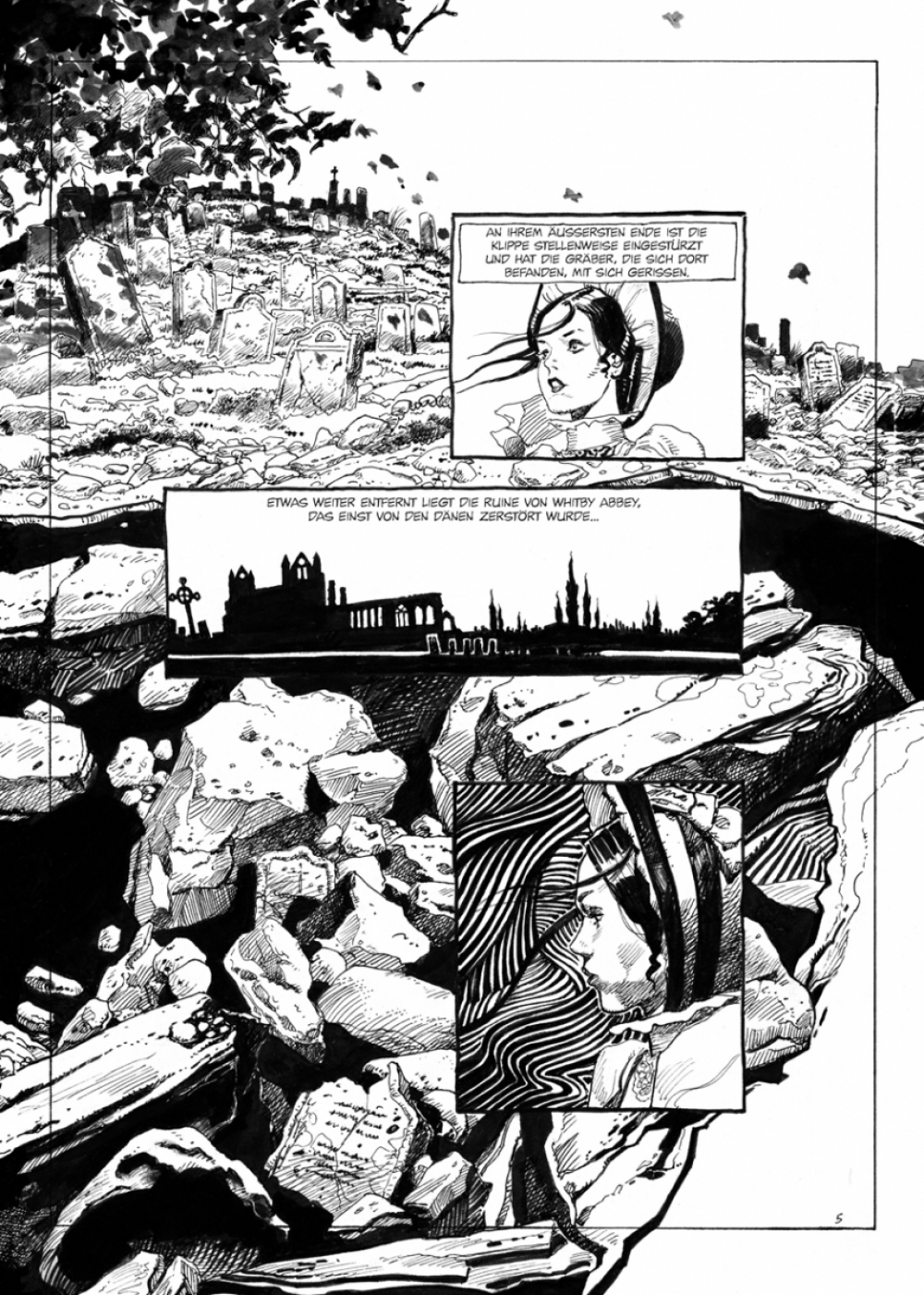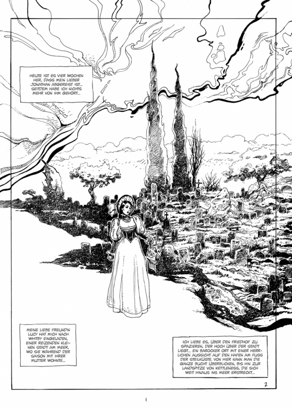 Im Jahre 1897 verlieh Bram Stoker einer der einflussreichsten Figuren der Literaturgeschichte unheiliges Leben. Graf Dracula wurde zur Ikone, die Generationen von Künstlern aller Genres inspirierte. Mit Georges Bess widmet sich nun ein wahrer Meister der Neunten Kunst der berühmtesten aller Vampirgeschichten und legt seine Vision des Mythos vor. Mit der grafischen Brillanz, für die er bekannt ist, lässt Bess in kraftvollen Linien und imposanten Schwarz-Weiß-Zeichnungen die finstere Faszination Draculas neu erstehen.