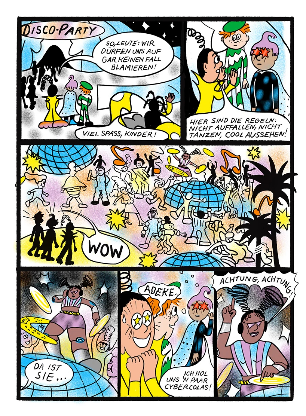 Mit Slapstick-Humor und Liebe zum Detail entführt Aisha Franz ihre kleinen und großen Leser:innen erneut in eine Zukunft, die unserer gar nicht so unähnlich ist – nur ein bisschen schräger, unvorhersehbarer und mit mehr Robotern.