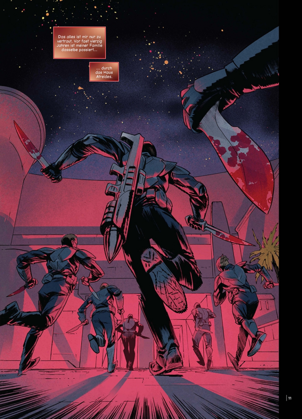 Im Chaos der schicksalhaften Schlacht um Arrakeen wird eine Gruppe Soldaten des Hauses Atreides durch einen Erdrutsch in einer Höhle gefangen. Während sein Herzog Leto Atreides um sein Leben kämpft, muss Sergeant Vitt alles dransetzen, um seine Männer zu befreien und irgendwie zurück auf ihren Heimatplaneten Caladan zu bringen. Auf der anderen Seite der Frontlinie sieht sich Jopati Kolona einer folgenträchtigen Entscheidung gegenüber: Er ist einer der Sardaukar, ein Elitekrieger des allmächtigen Imperators, und es ist seine Aufgabe, den Wüstenplaneten Arrakis den Händen der Atreides zu entreißen. Die Pflicht ist das höchste Gut der Sardaukar, und eigentlich sollte diese Mission Grund zur Freude für Jopati sein, denn die Atreides vernichteten einst seine Heimatwelt. Aber ist es wirklich Rache, nach der es ihn dürstet?