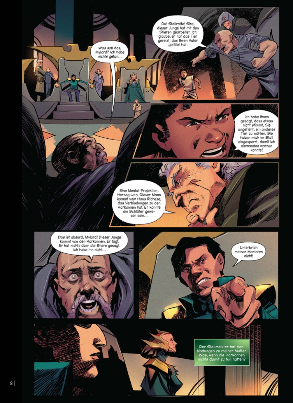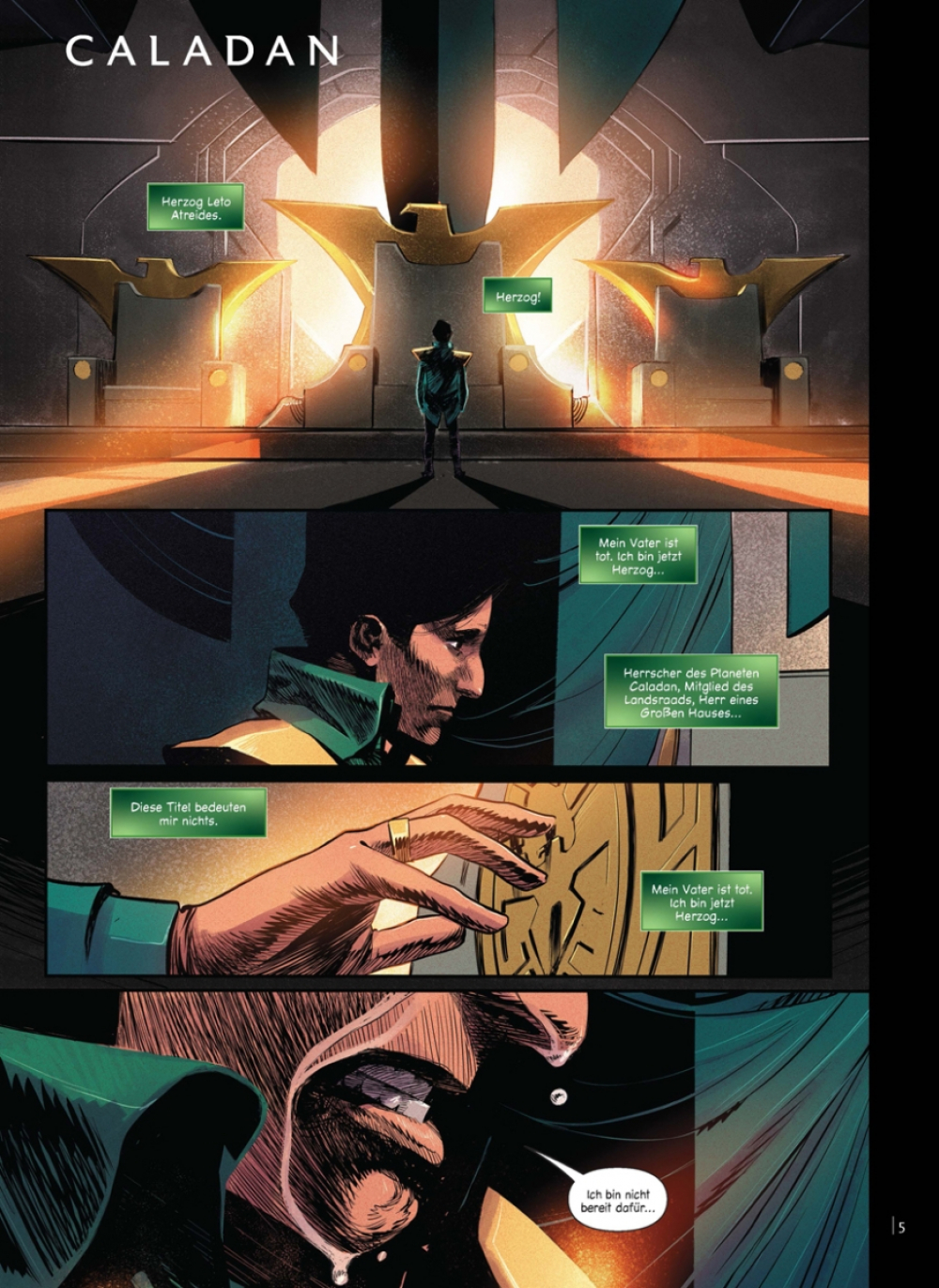 Auf der Fährte eines unfassbaren Komplotts steigert sich Leto Atreides mehr und mehr in einen Wahn, der ihn blind macht für die Fallstricke, die seine Gegner für ihn auslegen. Denn der grausame Baron Harkonnen lässt nichts unversucht, um den Erben des Adelshauses von Caladan zu diskreditieren. Wenn der Baron sich dabei nicht vorsieht, wird er jedoch selbst bald Opfer einer grausamen Intrige sein: Sein Neffe Shaddam steht kurz davor, den Thron gewaltsam an sich zu reißen. Doch wird nichts davon geschehen, wenn es den Plänen der geheimnisvollen Bene Gesserit nicht dienlich ist…