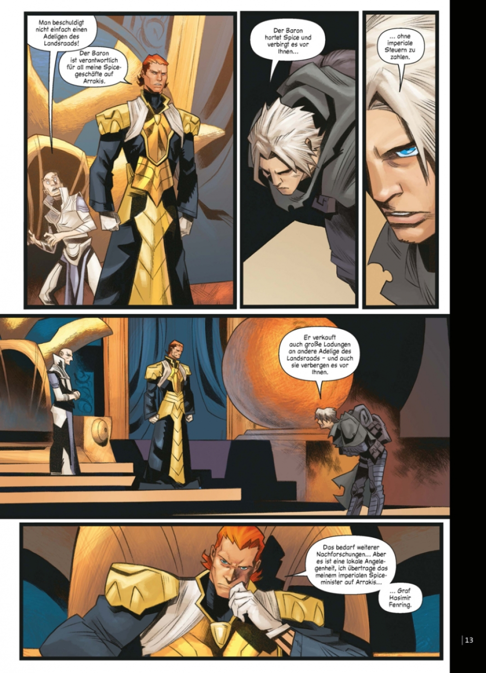 Das Haus Corrino ist die mächtigste Dynastie des bekannten Universums, denn es ist die Dynastie des Padischah-Imperators. Doch die gierigen Harkonnen setzen alles daran, das Machtgleichgewicht zu ihren Gunsten zu neigen, indem sie den Wüstenplaneten Dune und seine wertvollen Ressourcen rücksichtslos ausbeuten, um unfassbaren Reichtum anzuhäufen. Und auch der mysteriöse Orden der Bene Gesserit könnte den Corrino gefährlich werden, denn das Ziel ihres Jahrhunderte überspannenden Experiments scheint zum Greifen nahe zu sein… und das Haus Corrino spielt darin keine Rolle mehr.