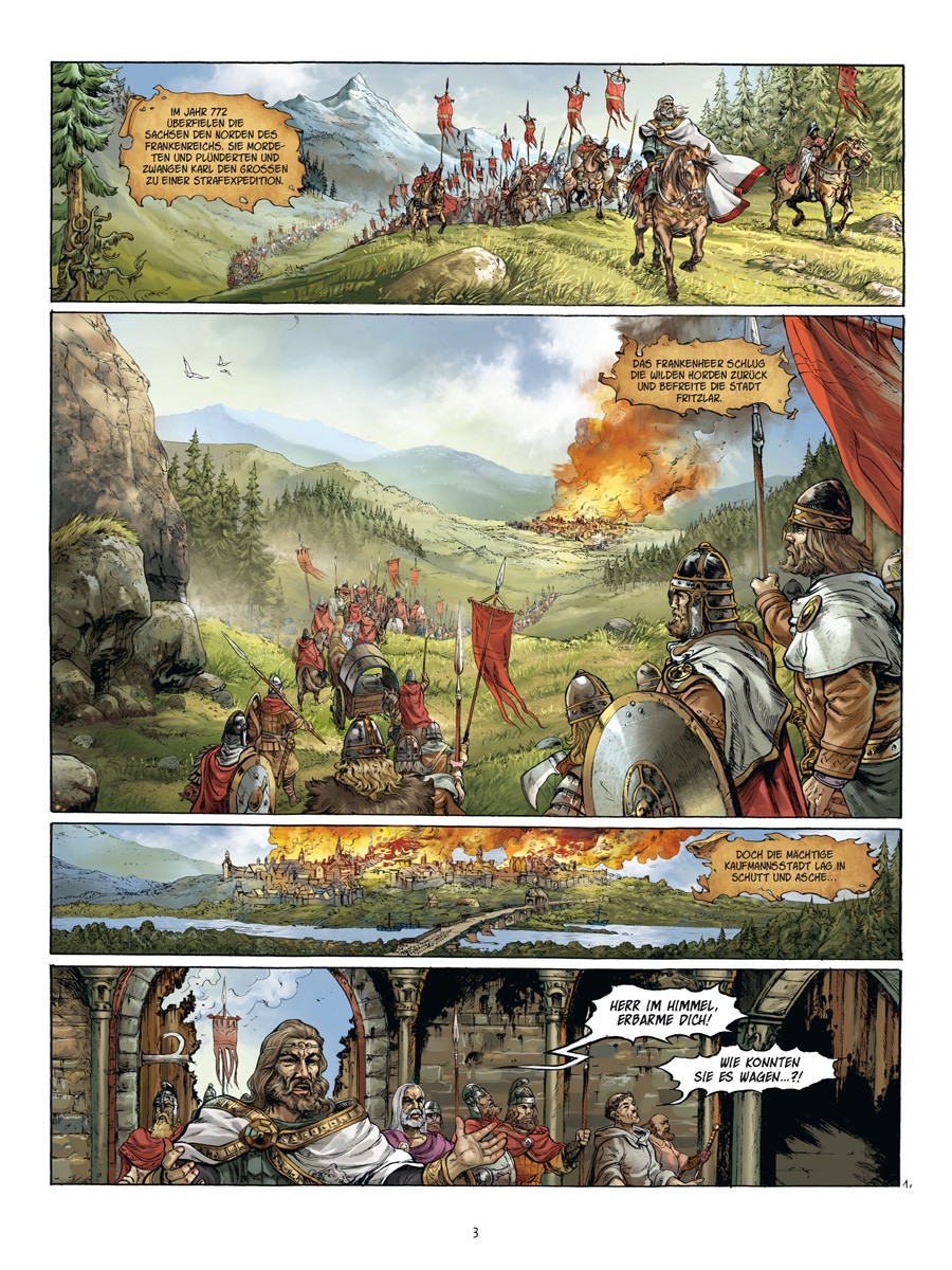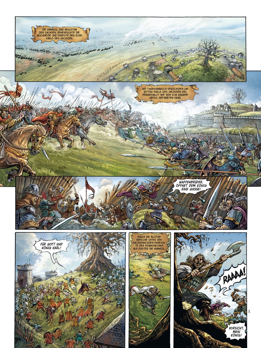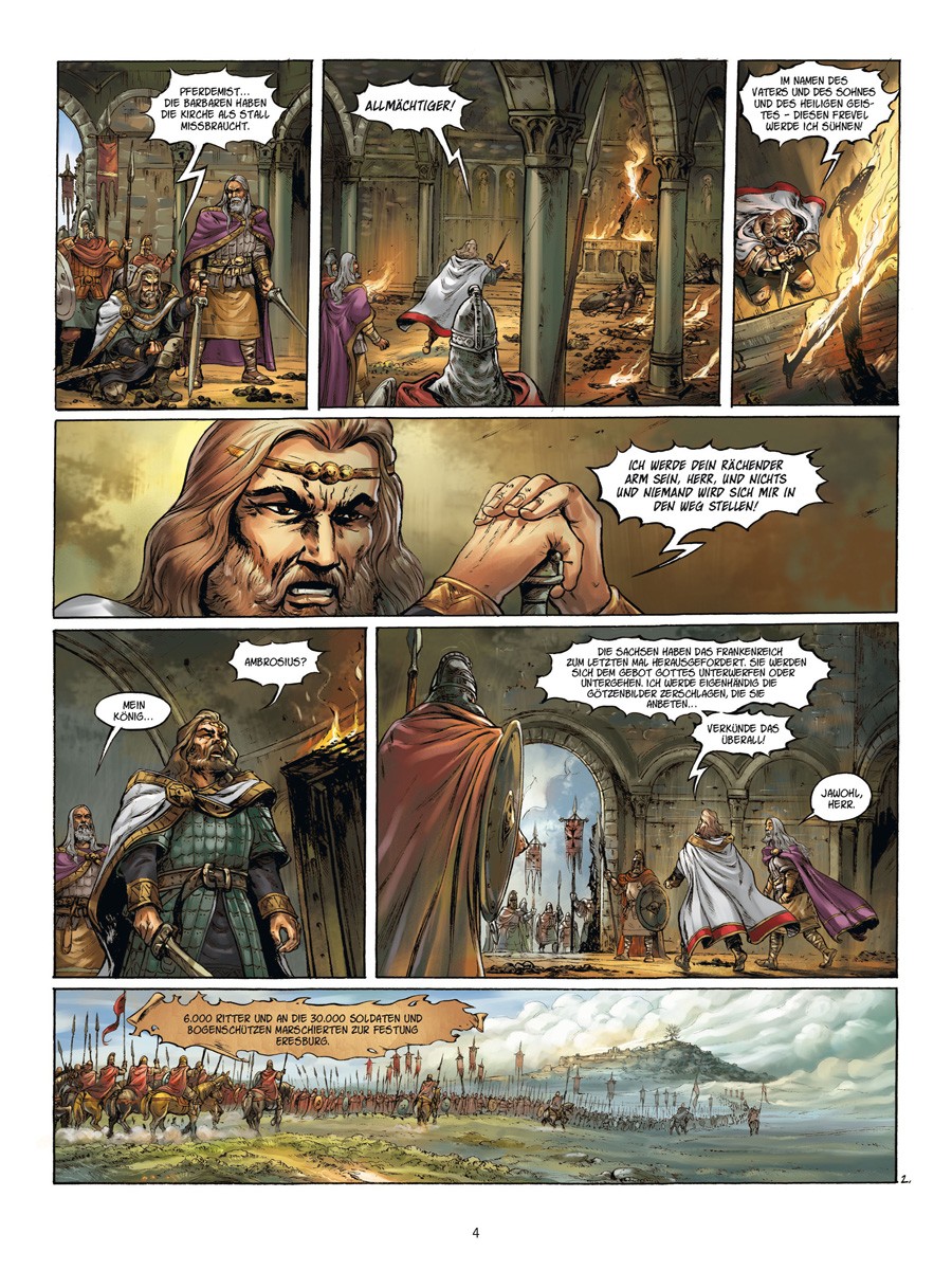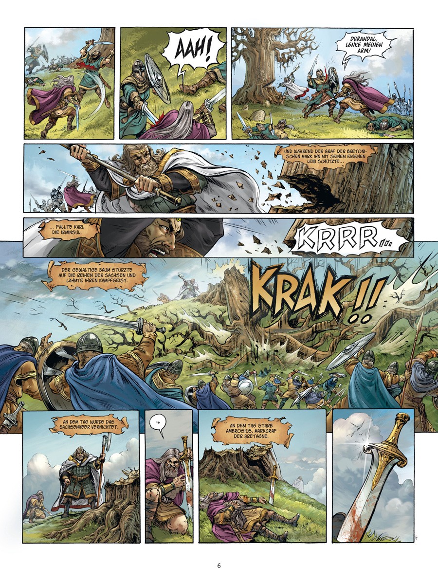 Erschöpft von den zahlreichen Angriffen der Sachsen gegen das fränkische Volk versammelt Karl der Große im Jahre 772 eine gigantische Armee, um den Feind aus dem Reich zu verjagen. Eine schreckliche Schlacht beginnt, in der die Sachsen letztendlich den Kürzeren ziehen. Doch der Sieg ist bitter, denn während der entscheidenden Schlacht stirbt Ambroise, der Graf der bretonischen Mark, treuer Vasall Karls des Großen und Besitzer des legendären Schwerts Durandal.