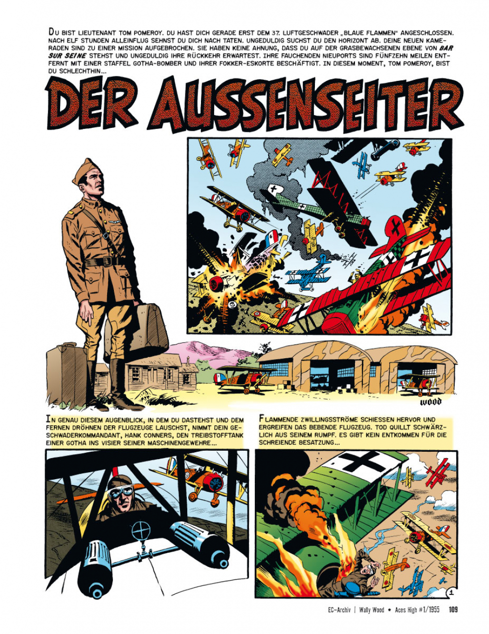 Das zeichnerische Ausnahmetalent Wallace Wood gehört zu den bedeutendsten Künstlern, die in den 1950er-Jahren durch ihre Arbeit für den New Yorker Verlag EC Comics den Grundstein für ihre Karriere gelegt haben. Dieser neue dem Wood’schen Schaffen für EC gewidmete Band präsentiert seine Geschichten aus den Magazinen Two-Fisted Tales, Frontline Combat, Piracy, Valor und Aces High.