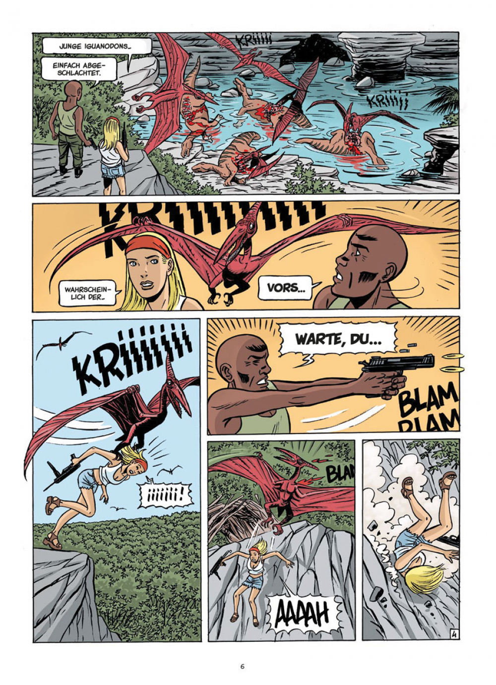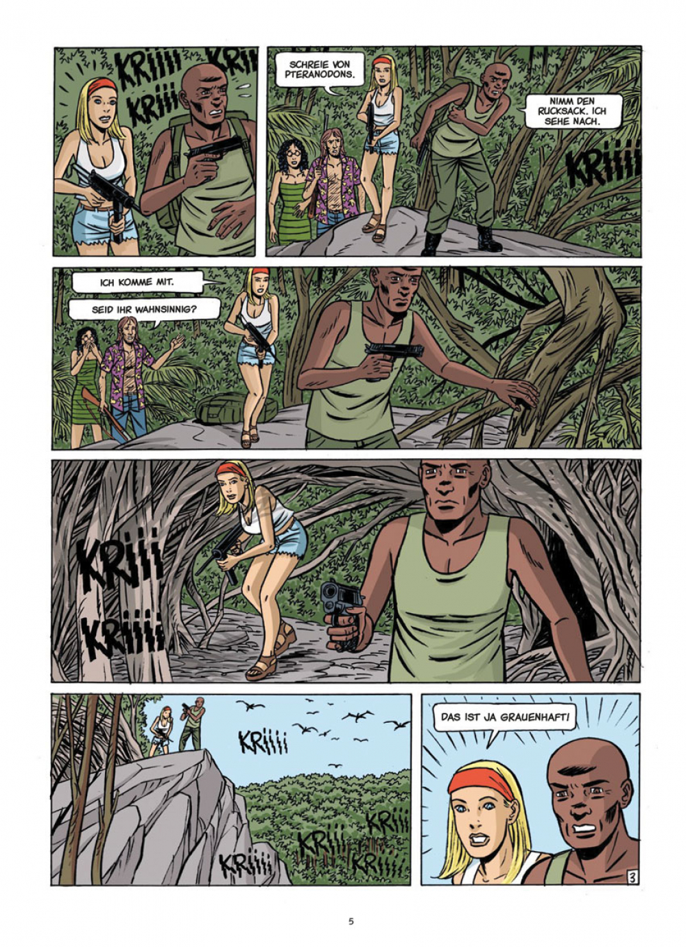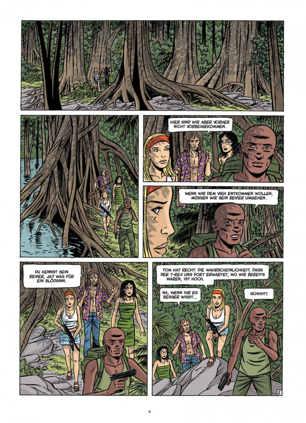 Das Abenteuer von Kathy Malone und ihren Freunden auf der unzugänglichen Hochebene nimmt mächtig Fahrt auf. Die Zutaten: Verrat und Verschwörung, versprengte Sowjets und ewige Nazis, ein abgestürztes Fugzeug und natürlich viele Dinos. Es gibt Lebensgefahr und überraschende Wendungen und überhaupt: wer ist dieser Tom, der sich der Gruppe so energisch angeschlossen hat?