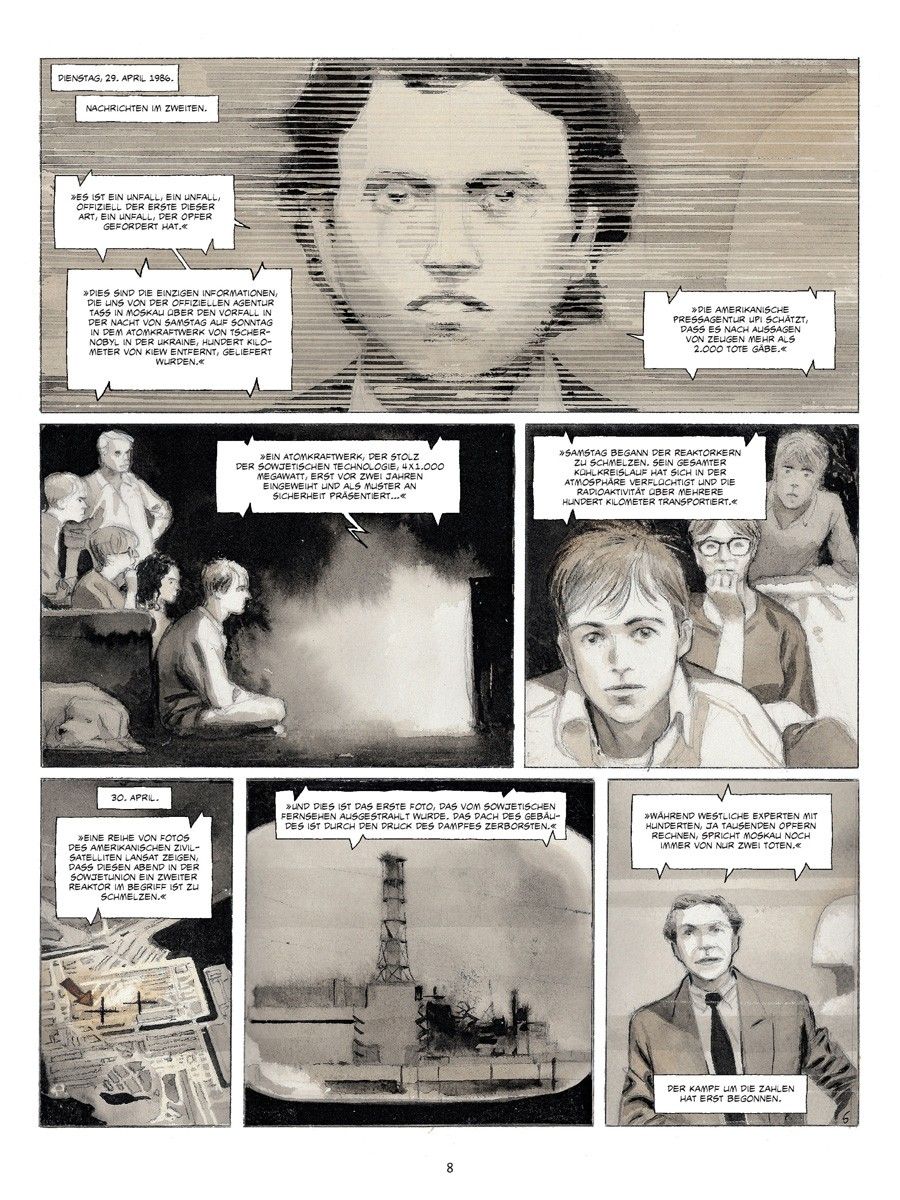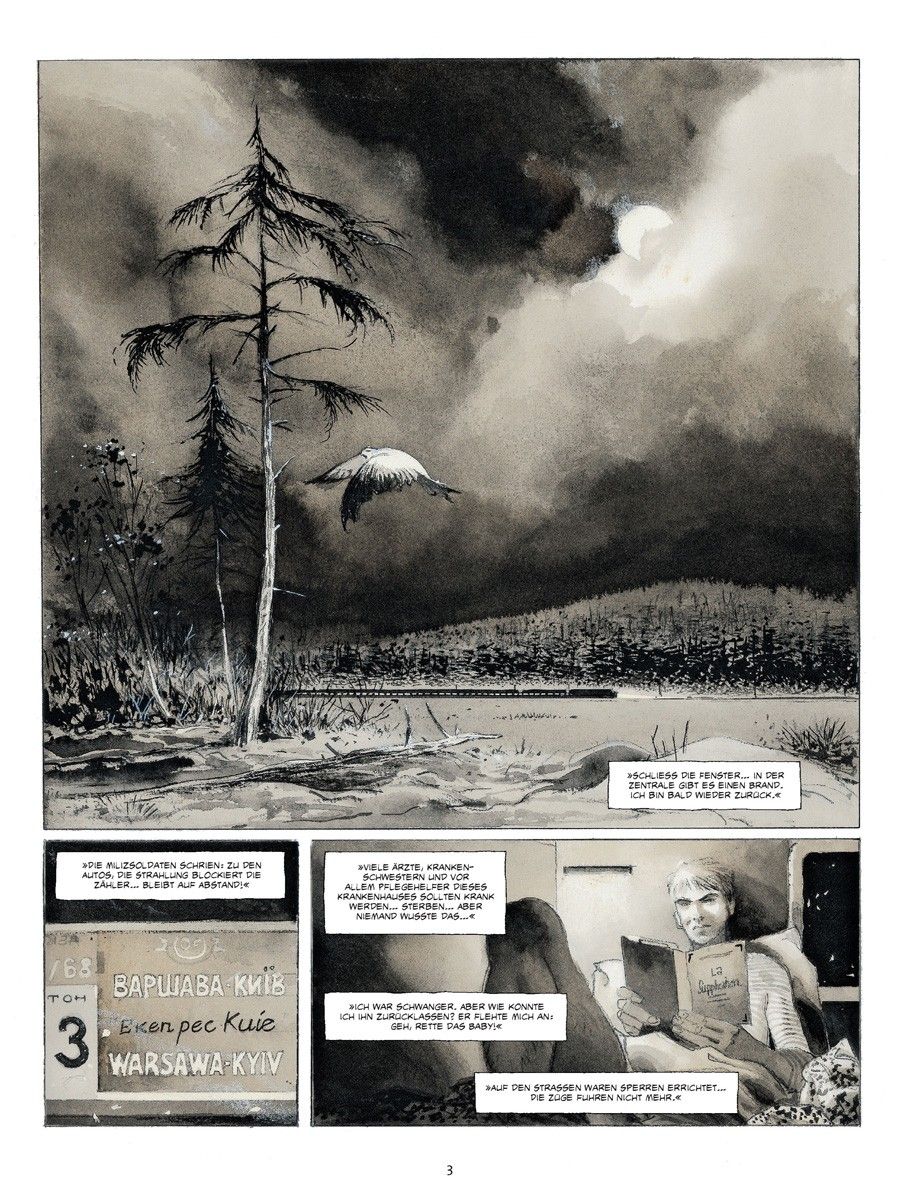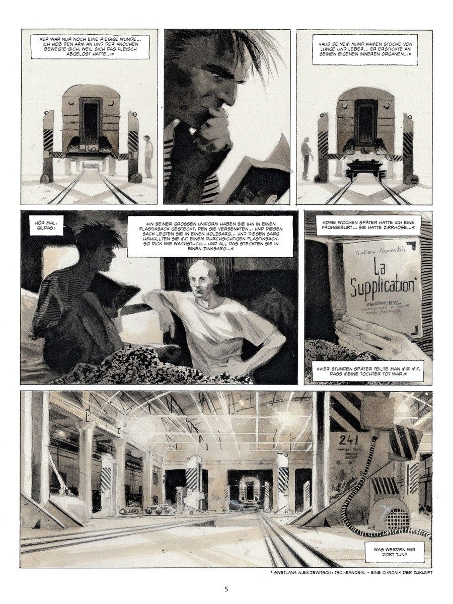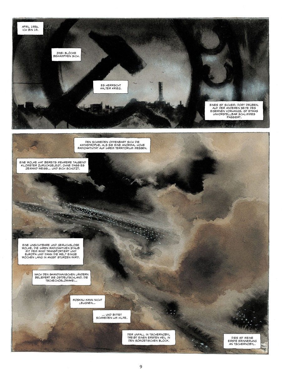 In Tschernobyl beginnt der Reaktorkern des Atomkraftwerks zu schmelzen. Eine radioaktive Wolke zieht über mehrere tausend Kilometer hinweg, ohne dass irgendjemand davon weiß – und sich davor schützt. Es ist die größte Nuklearkatastrophe des 20. Jahrhunderts, die zehntausende Opfer fordern wird. Emmanuel Lepage ist zu dieser Zeit 19 Jahre alt. Ungläubig sieht und hört er die Nachrichten im Fernsehen. 22 Jahre später, im April 2008, fährt er nach Tschernobyl, um mit seinen Texten und Zeichnungen vom Dasein der Überlebenden und ihrer Kinder in dem hochverseuchten Gebiet zu erzählen. Als er beschließt, auf Anfrage des Vereins Dessin’acteurs dort hinzufahren, hat Lepage das Gefühl, dem Tod entgegenzutreten. Als er im Zug sitzt, der ihn in die Ukraine bringt, geht ihm eine Frage nicht mehr aus dem Sinn: Warum bin ich hergekommen?