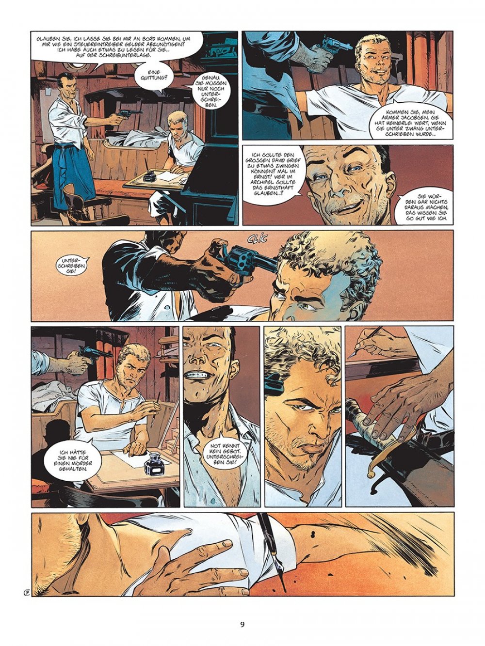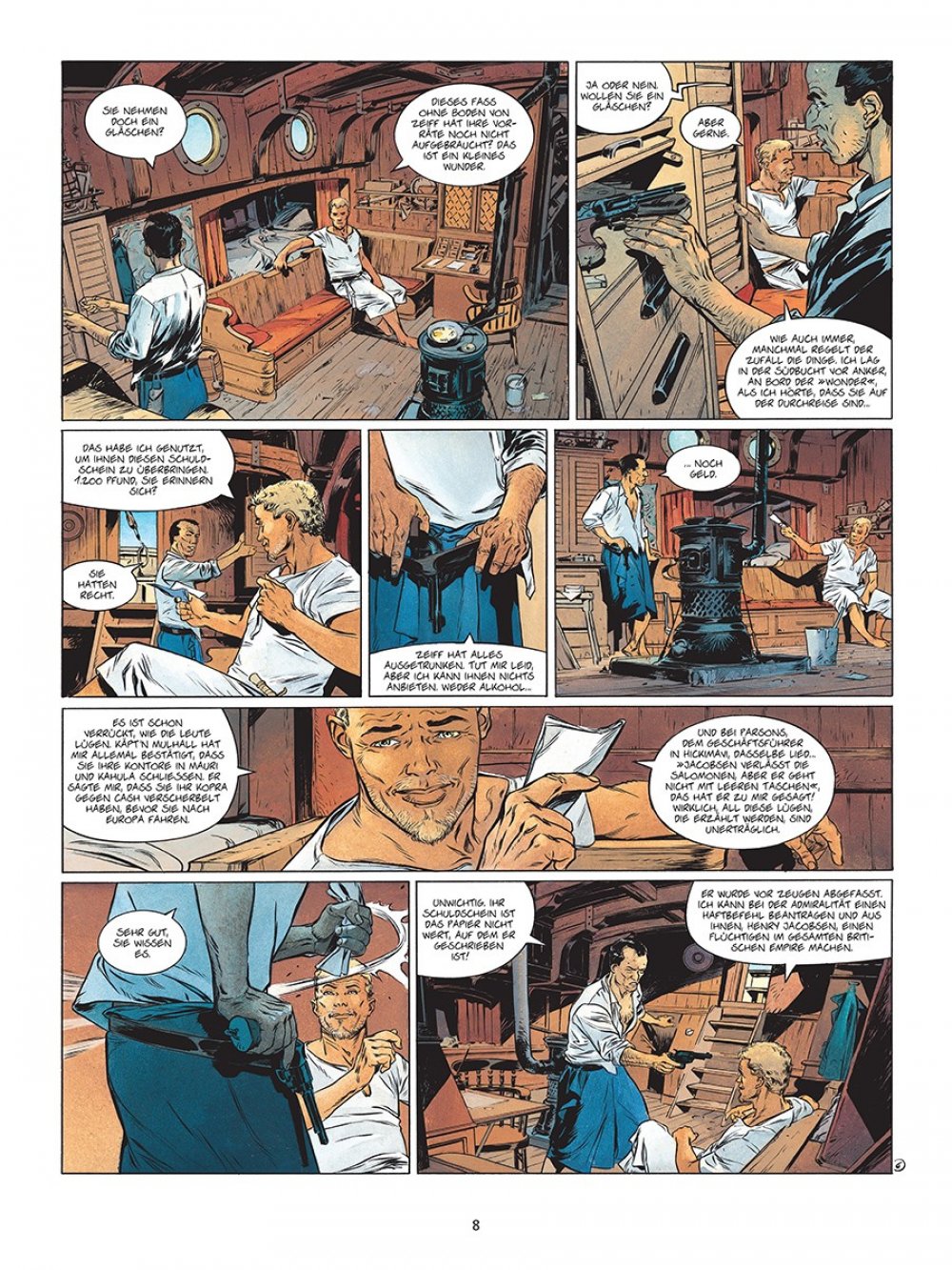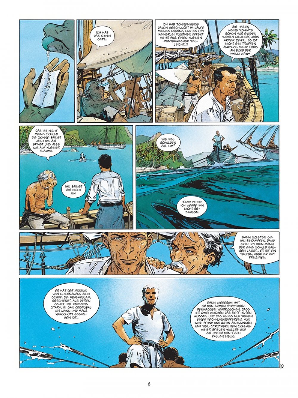 Die Südsee – Inbegriff westlicher Träume von Romantik und Abenteuer. Und Reichtum. Darum gibt es auch zahlreiche Geschichten von Draufgängern und Träumern, die in den Weiten des Pazifiks ihr Glück suchten. Eine Adaption von Jack Londons »Sohn der Sonne« verheißt demnach das große, klassische Abenteuer, und diese Erwartung wird von Fabien Nury (Text) sowie Eric Henninot (Zeichnungen) vollauf erfüllt. Im Zentrum der Geschichte steht David Grief, ein erfolgreicher Händler, der es im gesamten Pazifikraum zu Wohlstand gebracht hat.
