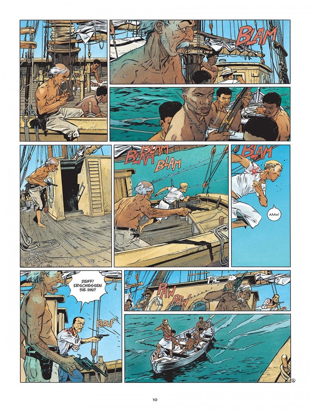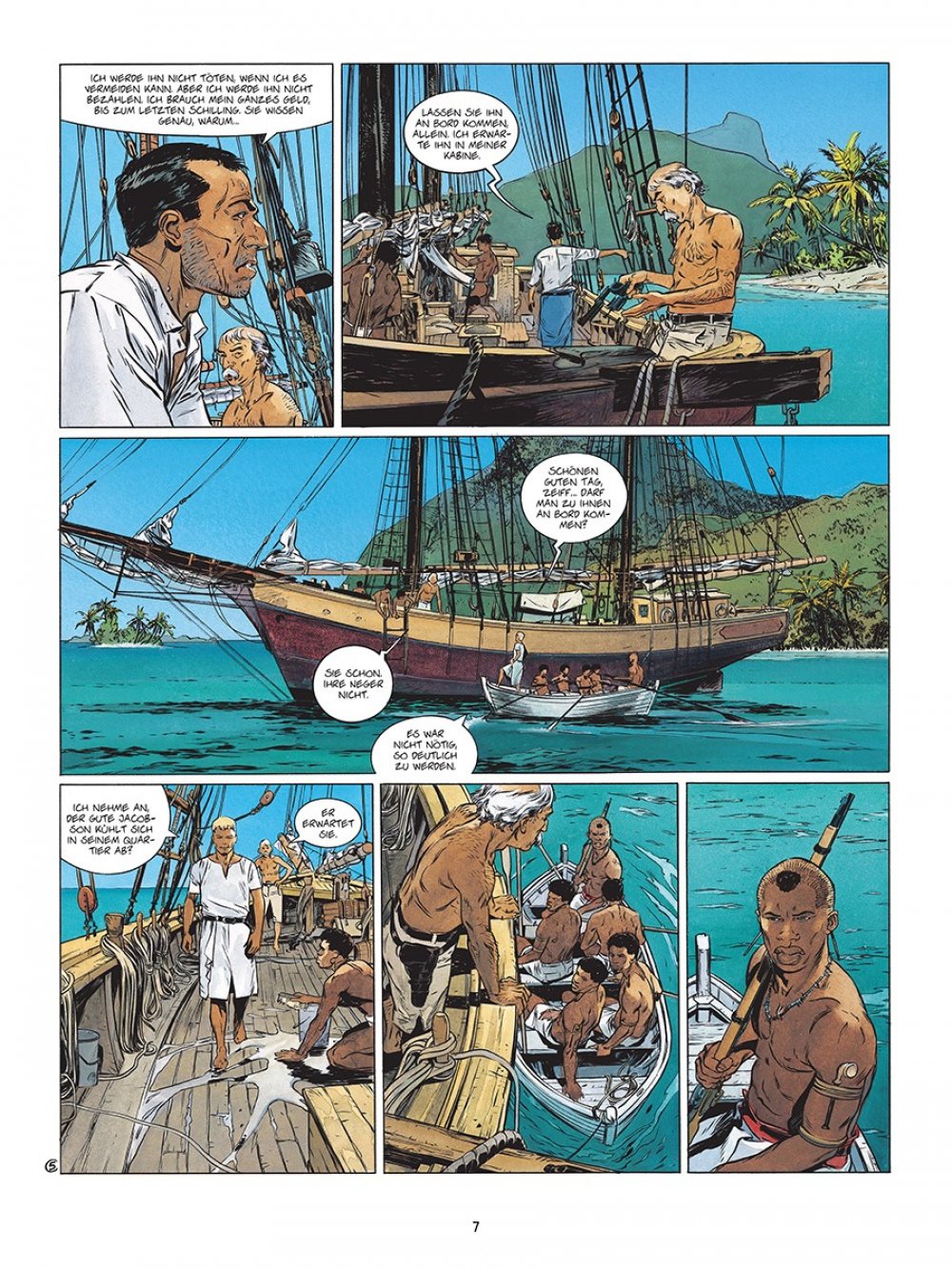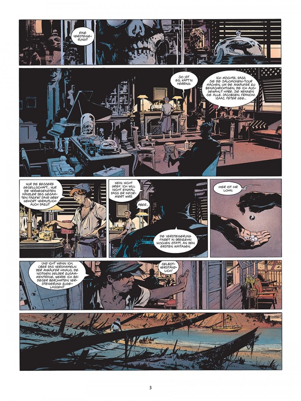 Die Südsee – Inbegriff westlicher Träume von Romantik und Abenteuer. Und Reichtum. Darum gibt es auch zahlreiche Geschichten von Draufgängern und Träumern, die in den Weiten des Pazifiks ihr Glück suchten. Eine Adaption von Jack Londons »Sohn der Sonne« verheißt demnach das große, klassische Abenteuer, und diese Erwartung wird von Fabien Nury (Text) sowie Eric Henninot (Zeichnungen) vollauf erfüllt. Im Zentrum der Geschichte steht David Grief, ein erfolgreicher Händler, der es im gesamten Pazifikraum zu Wohlstand gebracht hat.