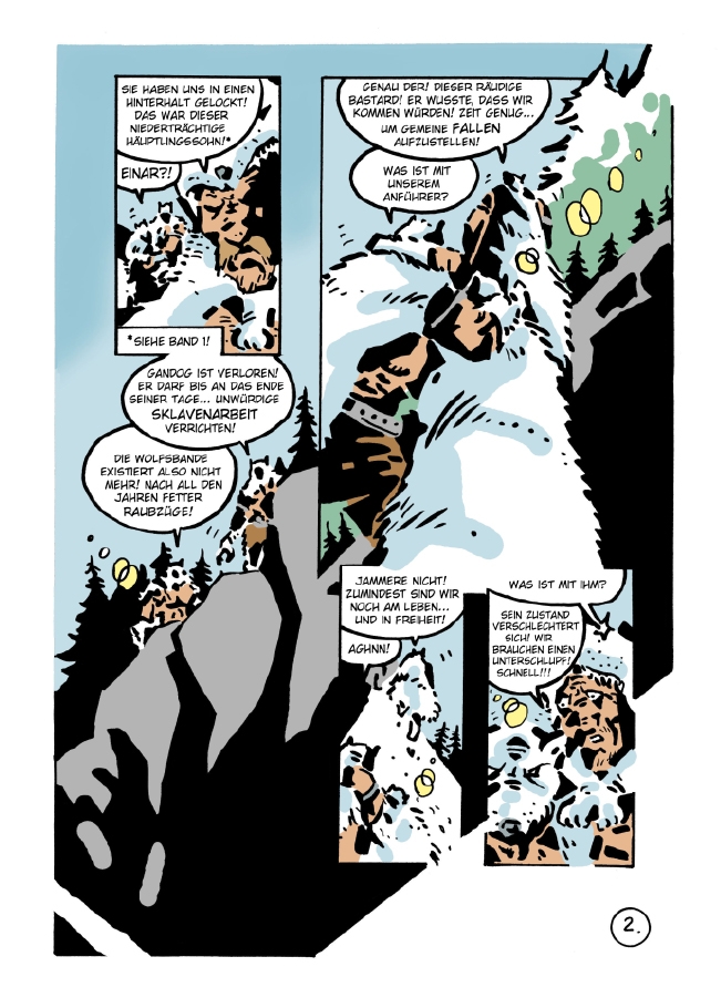 Im zweiten Band von Einar der Wikinger trifft dieser auf mysteriöse Steinmonster, die scheinbar unbesiegbar sind – doch hinter diesen monumentalen Gegnern verbergen sich verwandelte Krieger der „Wolfsmenschen“, die durch den Magier Rark verwandelt wurden. WIe können nun Einar und Weeneh Tha diese Gefahr für ihr Volk abwenden?