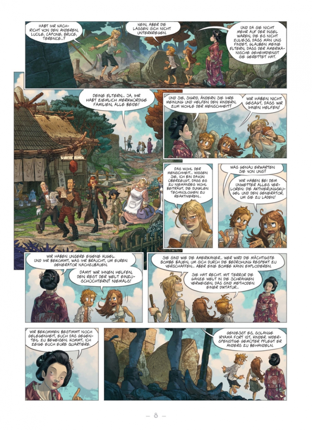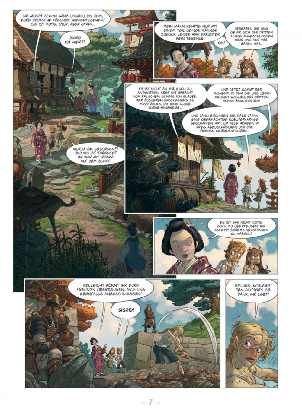 Endlich haben Emilien und Noémie herausfinden können, wer sich hinter der geheimnisvollen Dritten Achse verbirgt: Es ist Japan! Die Inselmacht ist am Wissen der Kinder interessiert und versucht sie zu überzeugen, sich ihrer Friedensmission anzuschließen. Denn angeblich dient die übermächtige Roboterarmee der Japaner ausschließlich dazu, kriegsführende Nationen zum Frieden zu zwingen. Während Noémie an ihren edlen Absichten zweifelt, ist Emilien Feuer und Flamme für das utopische Ziel Japans, woran auch seine Zuneigung zur jungen Kiritsu nicht ganz unschuldig sein dürfte. Trotzdem ist die Rückkehr in ihre Heimat das oberste Ziel der beiden – wenn diese Heimat denn noch existiert...