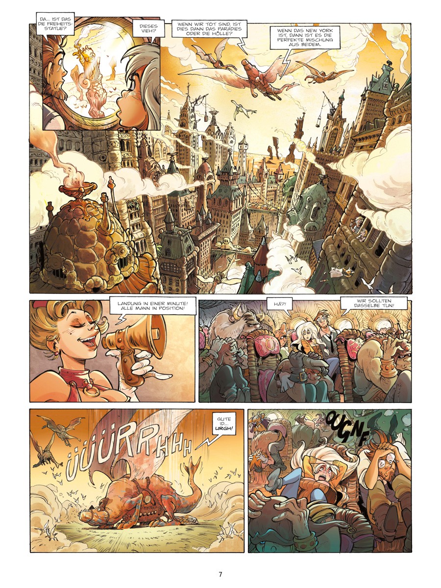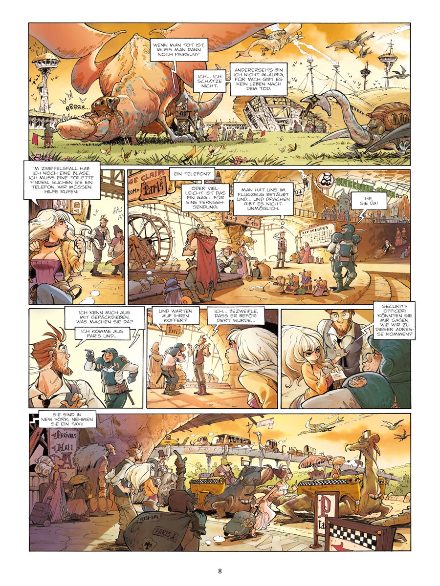 Eine Welt der Heroic-Fantasy, wie man sie noch nie gesehen hat! Die langerwartete Serie von Arleston und Barbucci. Als Fourmille das Flugzeug nach New York besteigt, hat sie keine Ahnung, dass ihre Reise eine seltsame Wendung nehmen wird. Während des Fluges wird sie von einer merkwürdigen Kreatur angesprochen, die sie fragt, ob sie das Erbe einer Tante annehmen wolle, die seit 20 Jahren verschollen ist. Und nachdem die 747 von einem Blitz getroffen wird, landet sie auf dem Rücken eines Drachen in New York. Und sie entdeckt eine seltsame Welt, in der einiges der Erde ähnelt, aber vieles vollkommen anders ist – sie taucht ein in ein Manhattan der Heroic Fantasy. Und im Mittelpunkt der Geschichte steht ein fremdartiges Volk, die Preshauns, die dieses Parallel- Universum – Ekhö – scheinbar dominieren…
