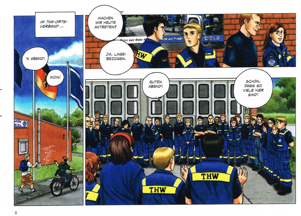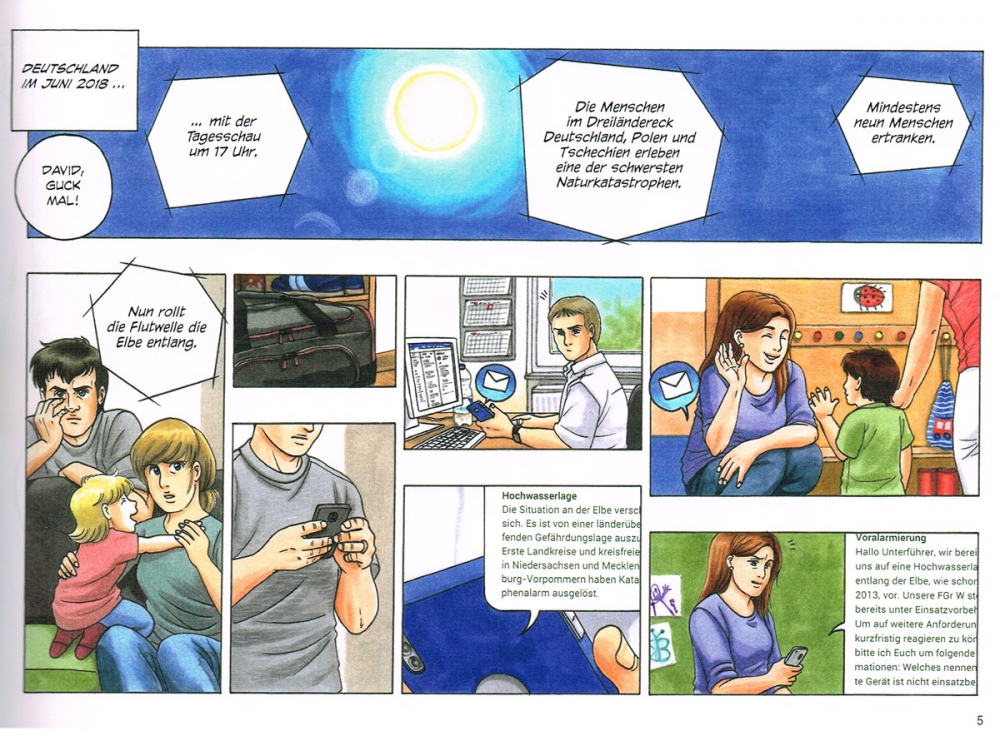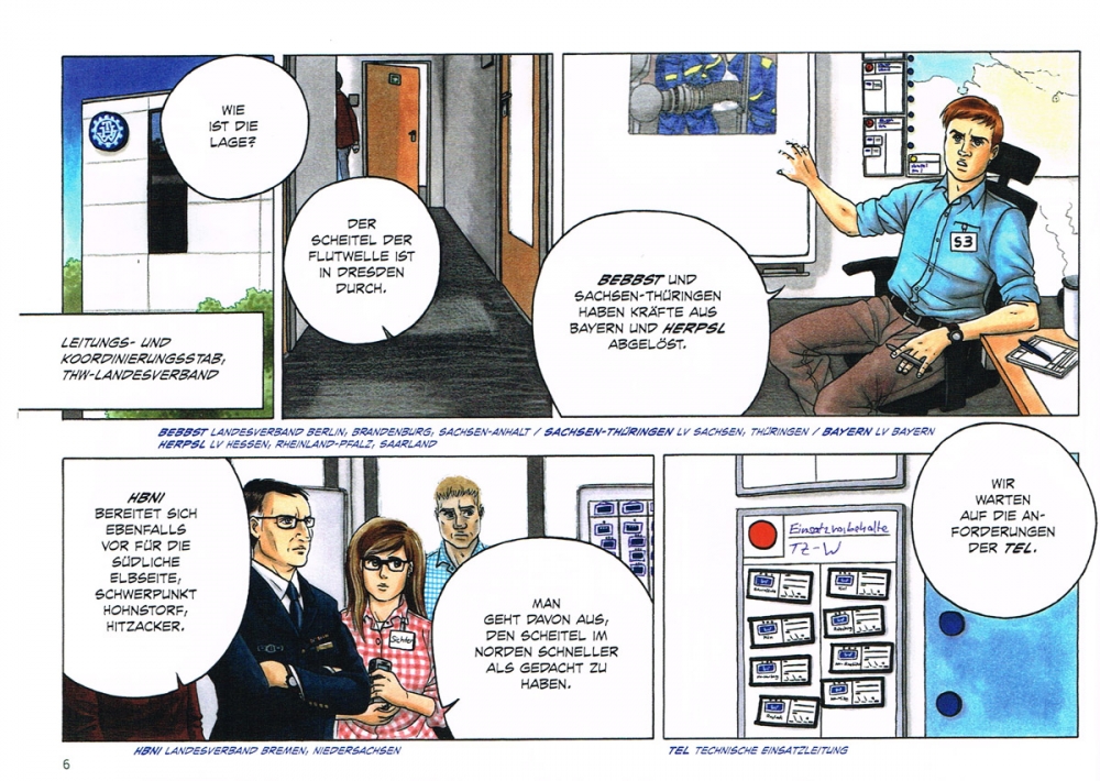 Vanessa Drossel zeigt in diesem Sachcomic minutiös, wie ein Großeinsatz des THW geplant und umgesetzt wird. Basierend aus Fakten der "Jahrhundertflut" von 2013 erzählt die die Geschichte einer Gruppe von Frauen und Männern, die ihre Zeit und ihre Kraft für die Sicherheit der Bevölkerung einsetzen.