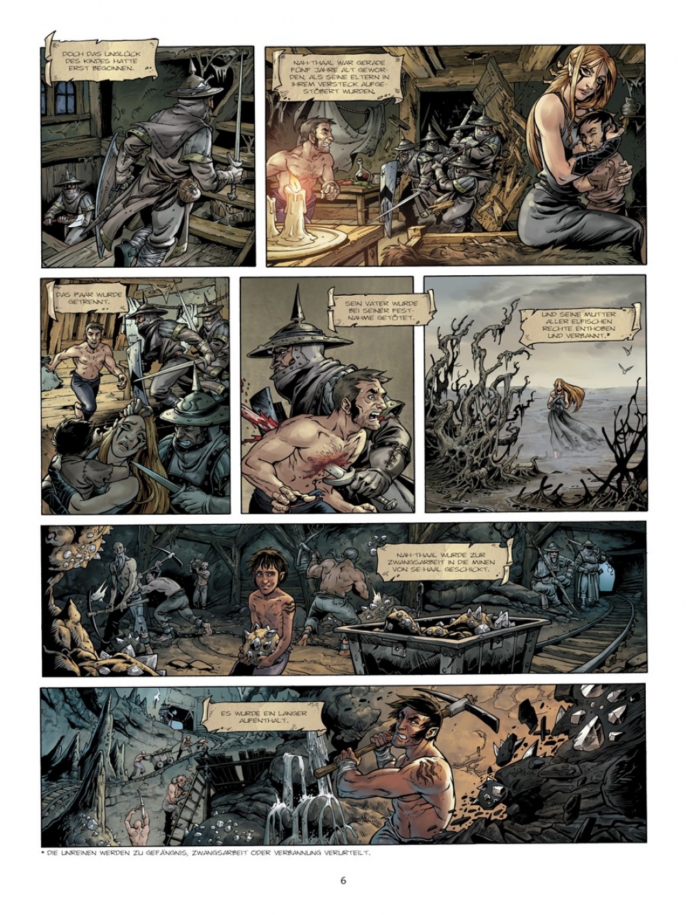 Die fünf Abenteuer spielen in einer fest umrissenen Welt und stellen bestimmte Aspekte dieses Universums dar. Jedes Album ist in sich abgeschlossen, aber gemeinsam bilden sie ein Ganzes. Elfen ist die erste Konzept-Serie im Verlag Soleil, entwickelt von Jean-Luc Istin und Nicolas Jarry. Die Autoren haben sich für jedes Album ein anderes Volk ausgedacht, das zwar einen eigenen Ort auf der Landkarte hat, aber sich mit den anderen Völkern die Welt teilt.