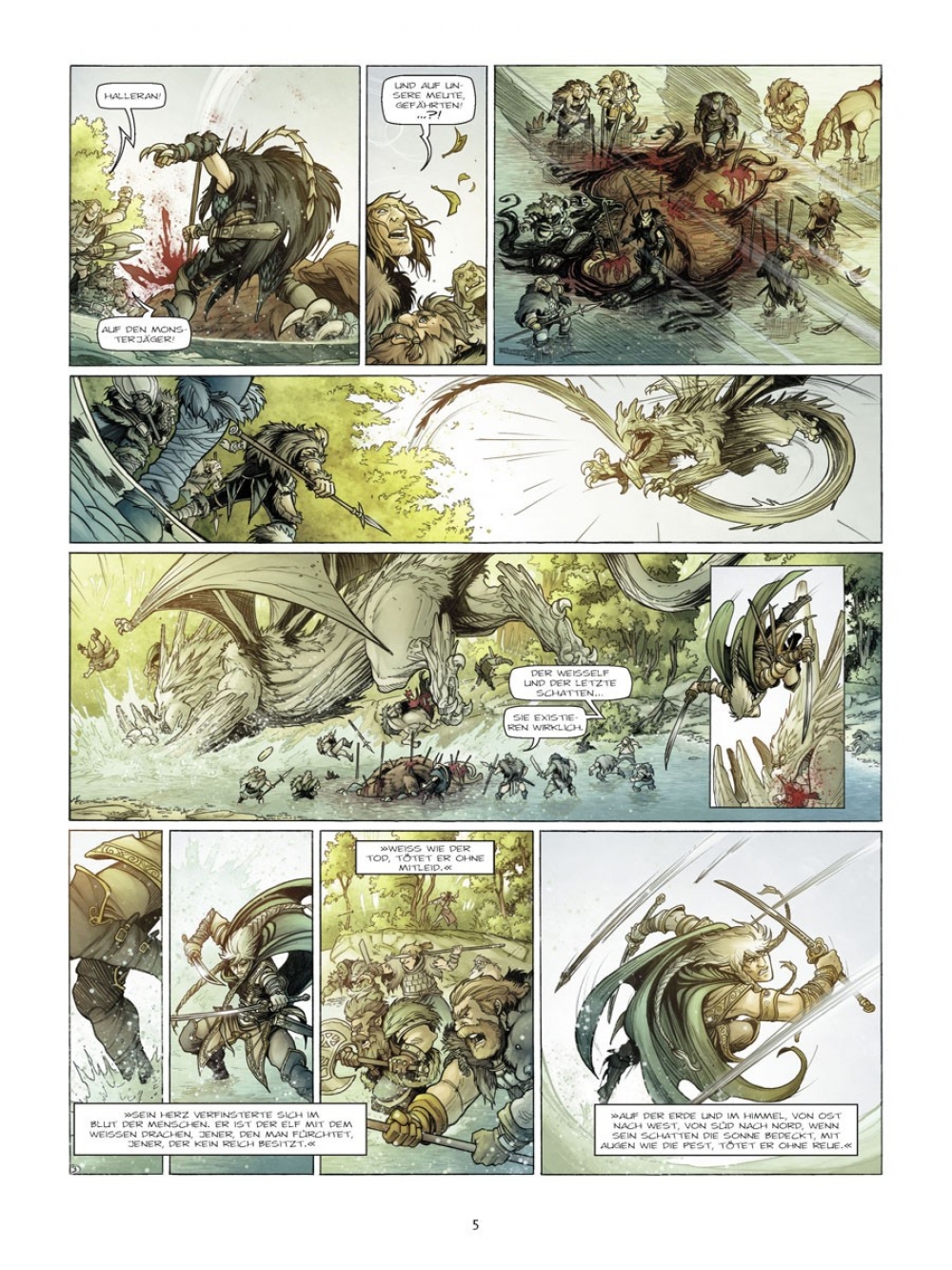 Die fünf Abenteuer spielen in einer fest umrissenen Welt und stellen bestimmte Aspekte dieses Universums dar. Jedes Album ist in sich abgeschlossen, aber gemeinsam bilden sie ein Ganzes. Elfen ist die erste Konzept-Serie im Verlag Soleil, entwickelt von Jean-Luc Istin und Nicolas Jarry. Die Autoren haben sich für jedes Album ein anderes Volk ausgedacht, das zwar einen eigenen Ort auf der Landkarte hat, aber sich mit den anderen Völkern die Welt teilt.