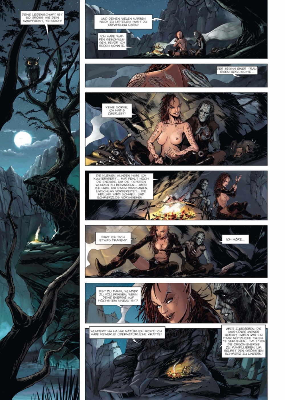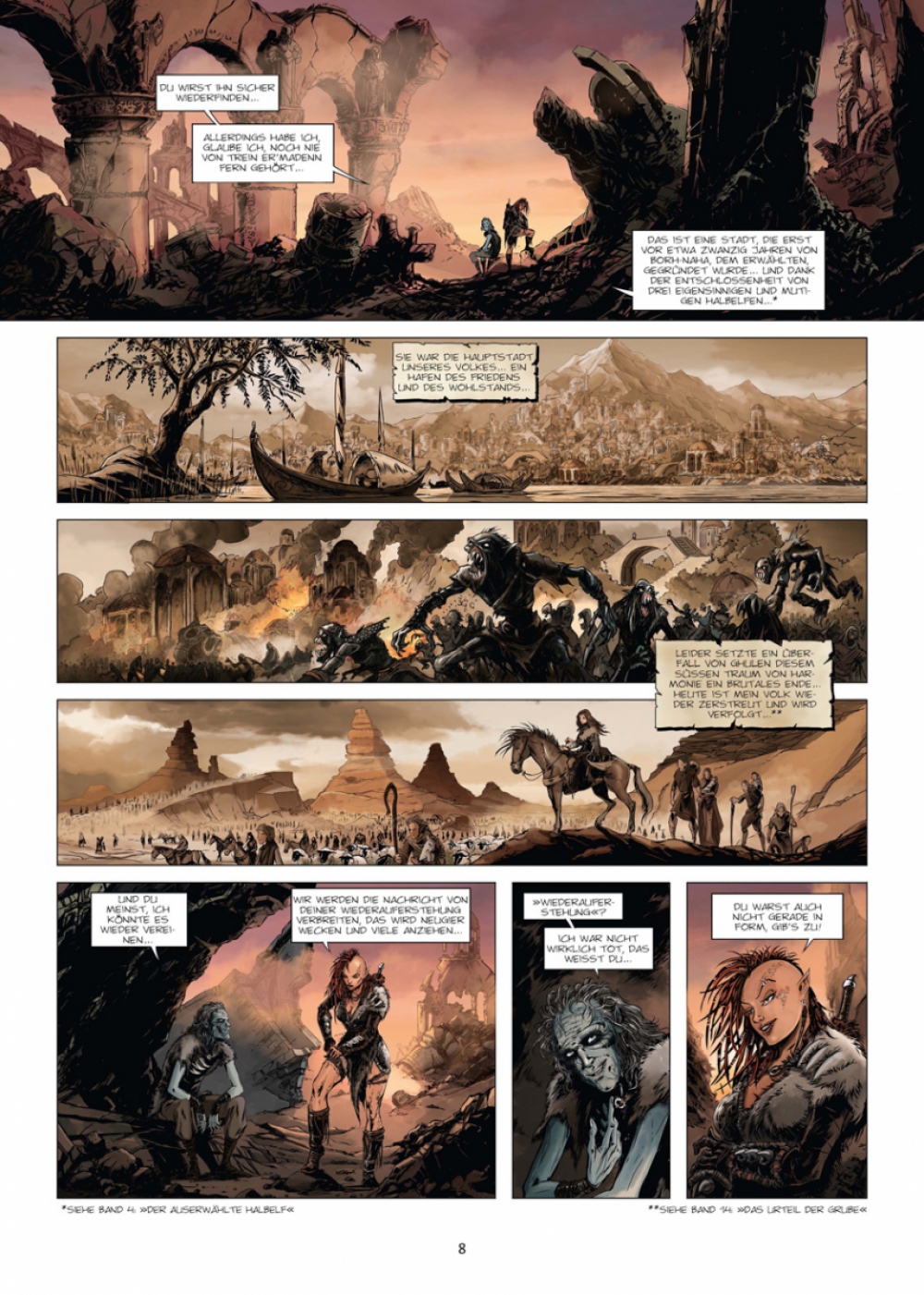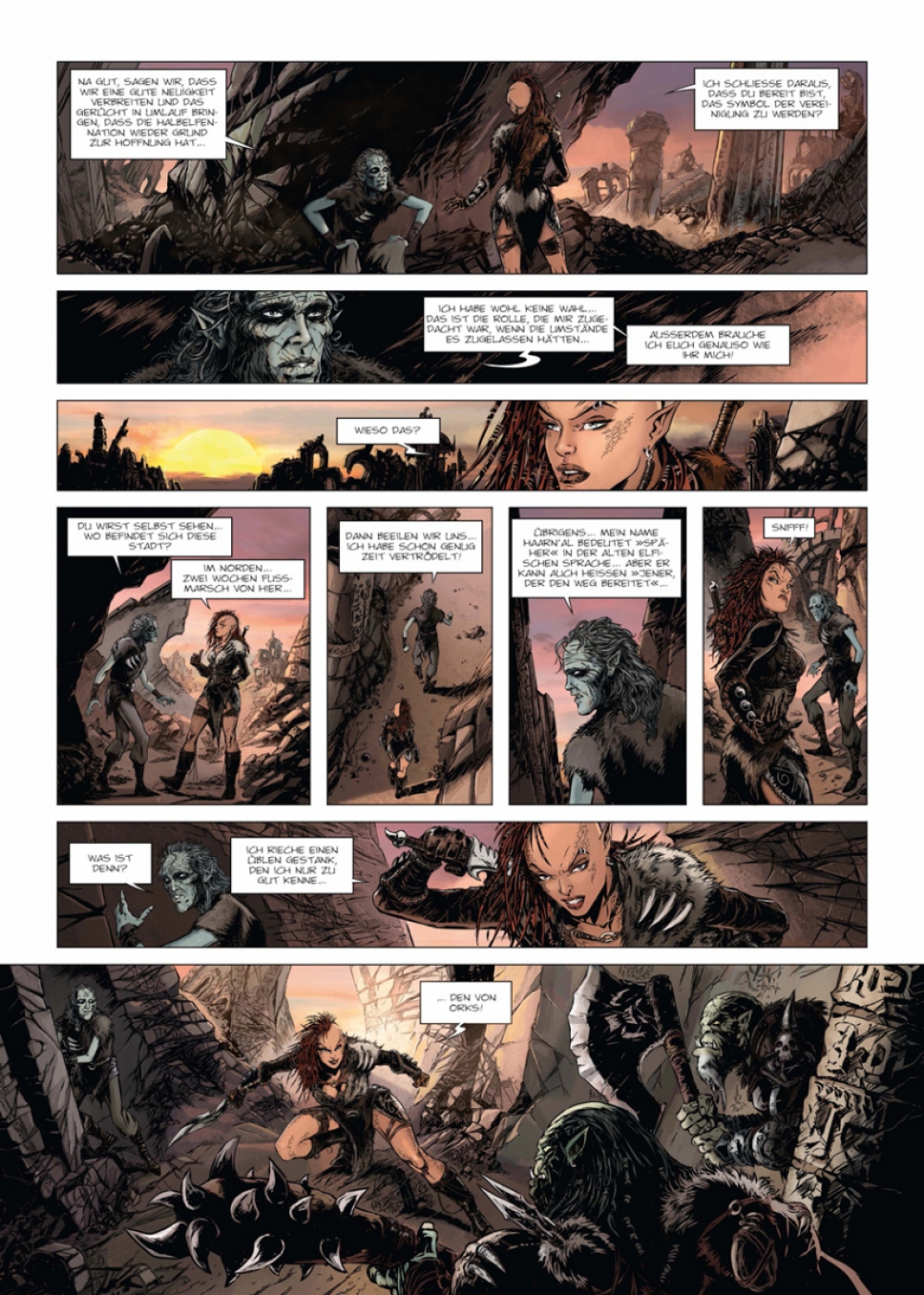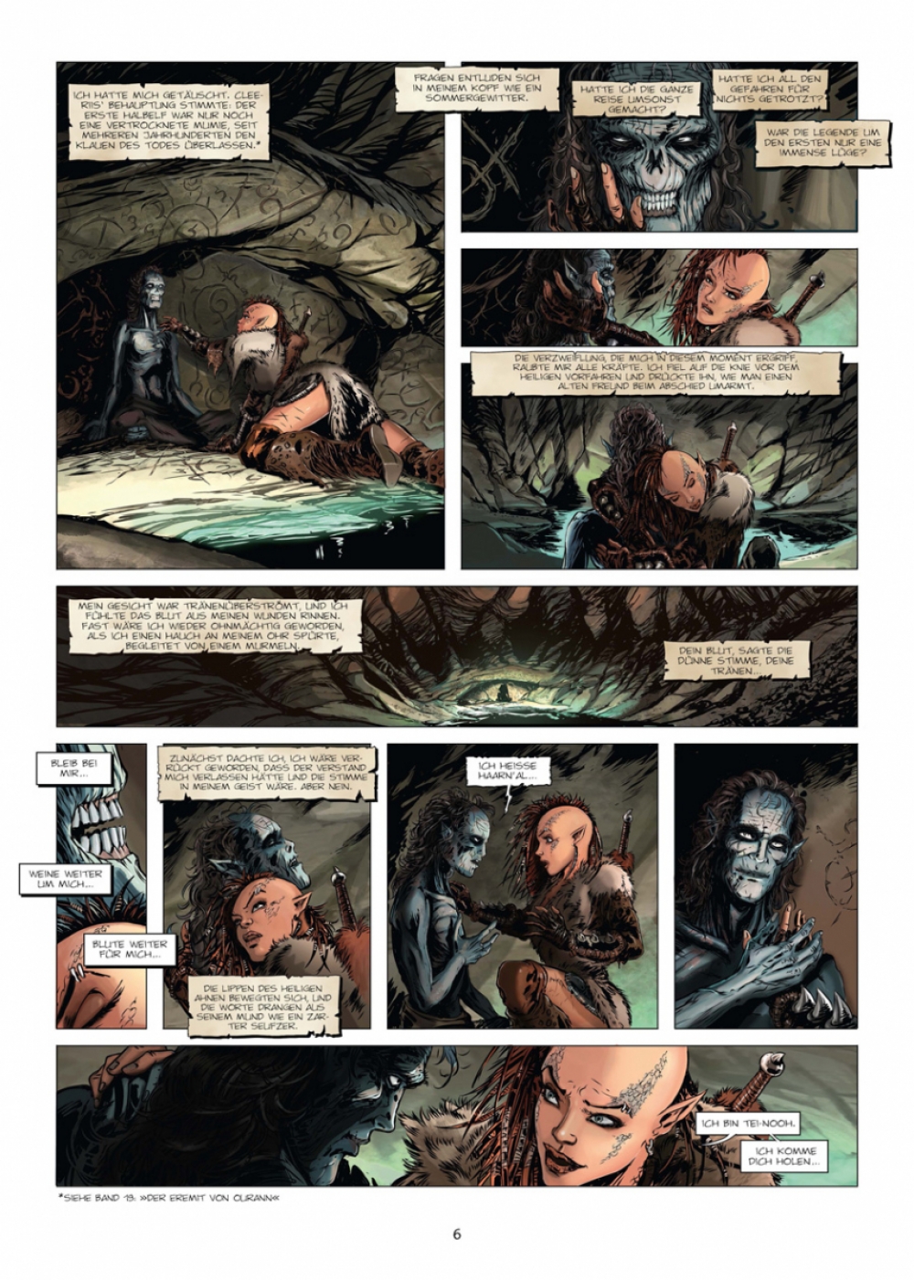 Nawel hat das alte Grimoire übersetzt, worin die Geschichte von Haarn’al geschrieben steht, des ersten Halbelfen. Es ist an der Zeit, in seine Geschichte einzutauchen: Auf einem vergessenen Archipel namens Roc wird der geheiligte Vorfahre der Halbelfen jeden Tag von zahlreichen Neugierigen aufgesucht. Sie wollen den Ersten unter den Bastarden mit eigenen Augen sehen, dessen zahlreiche Nachkommen darum kämpfen, einen Platz in einer Welt zu erringen, die sie nicht haben will. Außerdem besitzen Haarn’als Hände angeblich eine ganz besondere Kraft. Sie vermögen es, sämtliche Übel zu vertreiben… »Elfen« ist die erste große Fantasy-Konzeptserie. Das bedeutet: Jeder Band ist in sich abgeschlossen und wird von einem anderen Team aus Szenarist und Zeichner realisiert und jeder Band spielt in derselben fantastischen Welt: Arran. Nach und nach füllt sich die Welt von Arran mit immer mehr faszinierenden Figuren, und ein Handlungsbogen von epochalem Ausmaß offenbart sich...