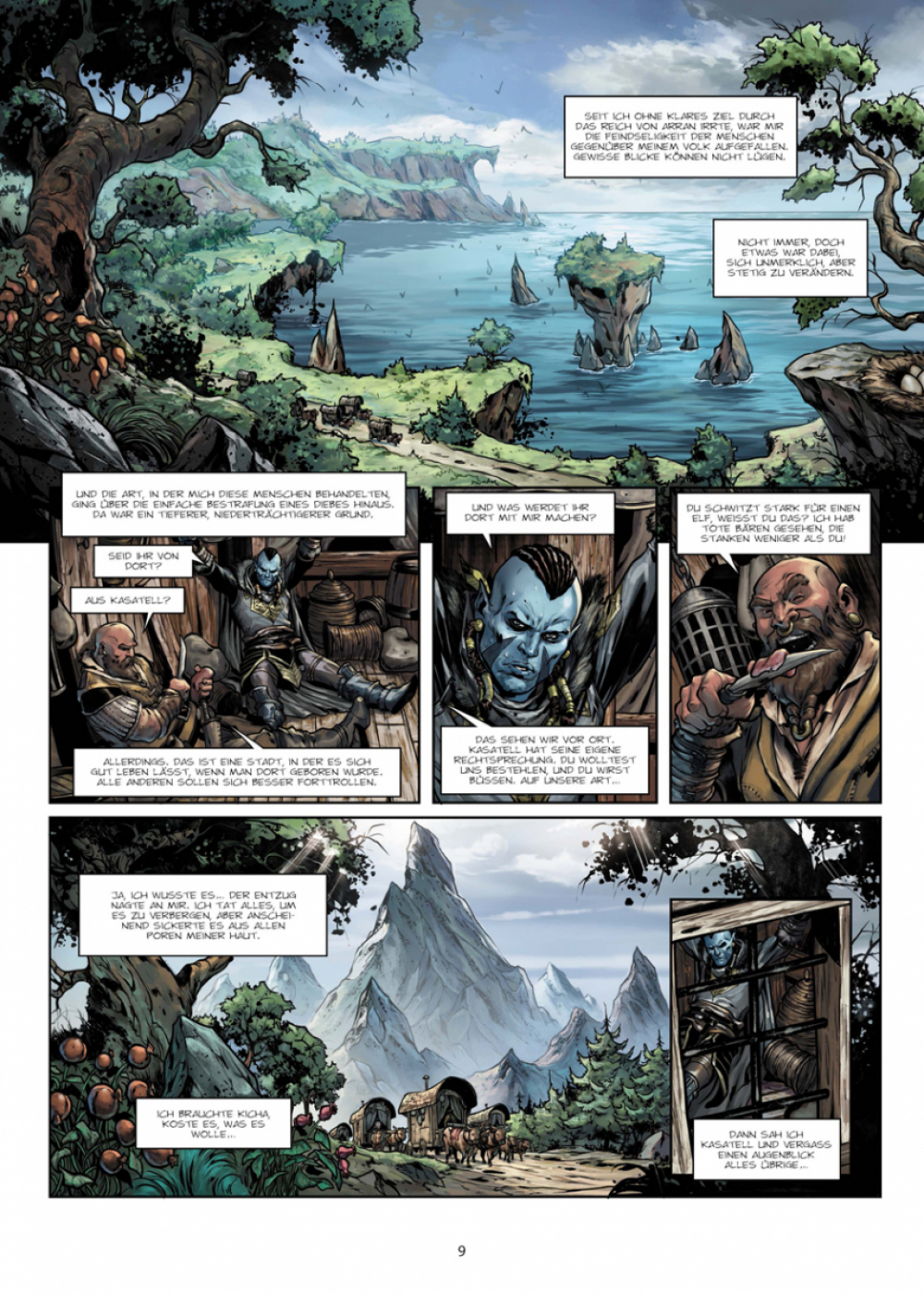 »Elfen« ist die erste große Fantasy-Konzeptserie. Das bedeutet: Jeder Band ist in sich abgeschlossen und wird von einem anderen Team aus Szenarist und Zeichner realisiert und jeder Band spielt in derselben fantastischen Welt: Arran. Nach und nach füllt sich die Welt von Arran mit immer mehr faszinierenden Figuren, und ein Handlungsbogen von epochalem Ausmaß offenbart sich...