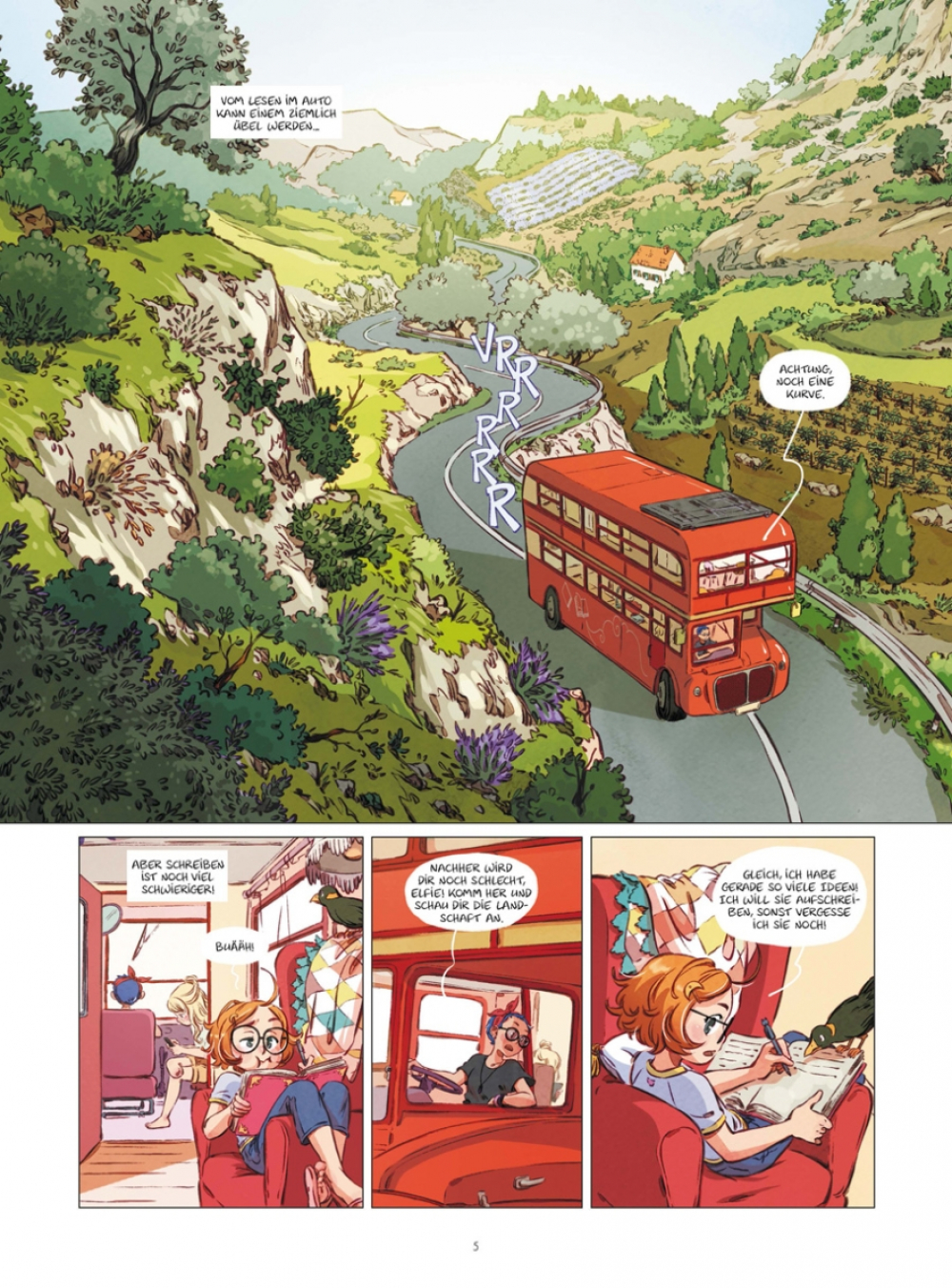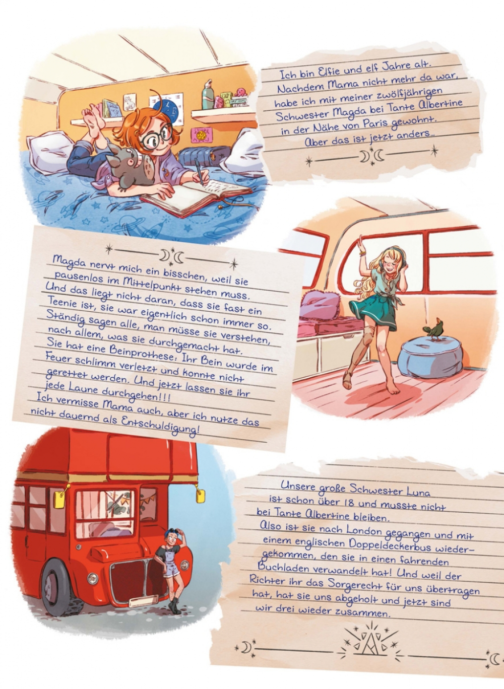 Elfie und ihre Schwestern kommen in Gonerbes an, einem kleinen Dorf in der Provence, das außer sengender Sonne wenig zu bieten hat. Sie wollen dort Alistair Kinloch besuchen, einen Schriftsteller, der mit ihrer Mutter Melusine befreundet war, als sie noch lebte. Alistair hat jedoch ganz eigene Probleme, denn seine Schreibmaschine wurde gestohlen, und seitdem kriegt er kein einziges Wort mehr zu Papier. An verdächtigen Personen herrscht in dem Dorf kein Mangel, und Elfie stürzt sich sofort in die Ermittlungsarbeit. Dank ihres Zauberbuchs, das sie mit Geschichten füttern muss, kann sie auf magische Hilfe zählen… oder?
